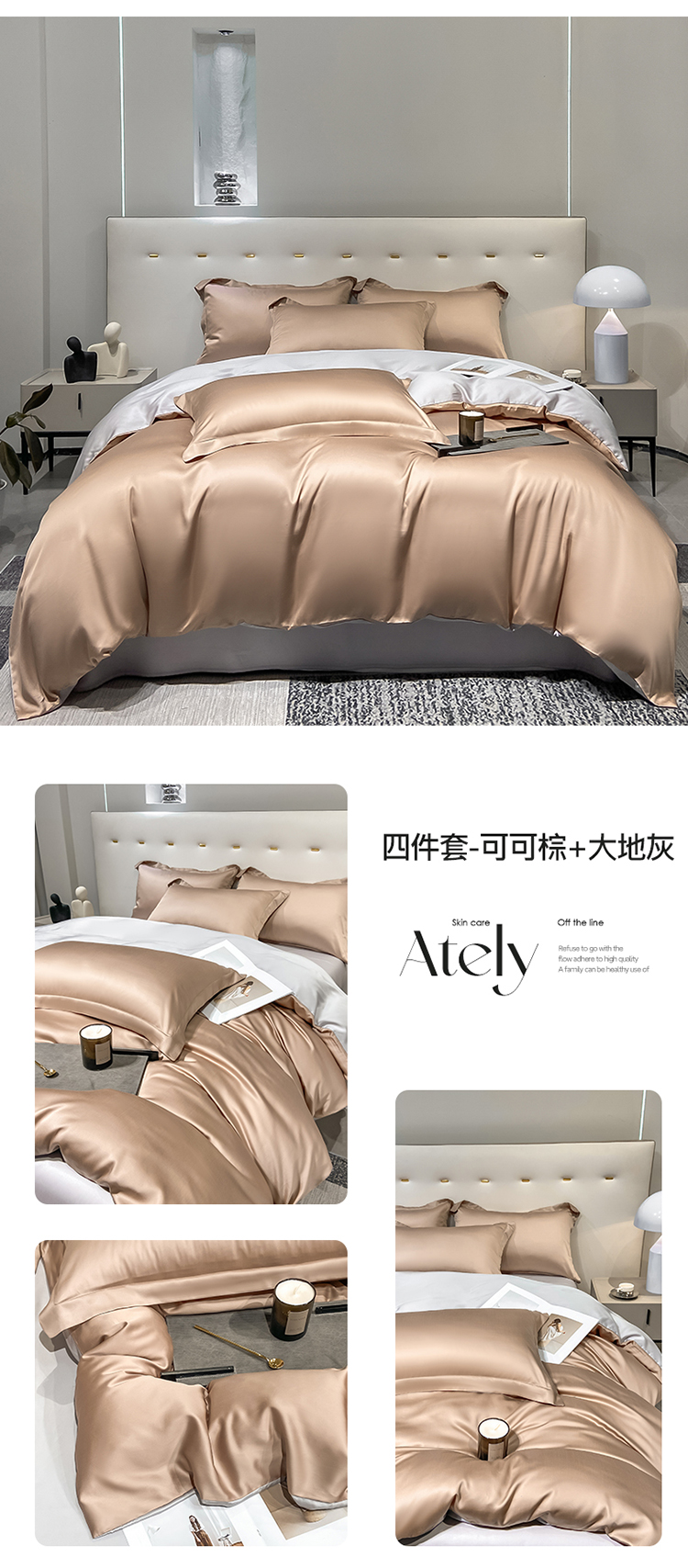 当前位置: 91家纺网 > 商品网购 > 床品套件 > 四件套 > 莱赛尔四件套 > 涵宸 兰精天丝TM纯色四件套 可可棕+大地灰