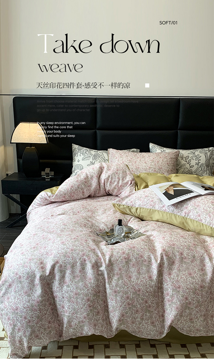 (总)澳萝拉 2023新款天丝印花四件套,芳馨,菲扬,江夏,恋馨,柠染-粉,浅语初开-米,叶飘,月韵