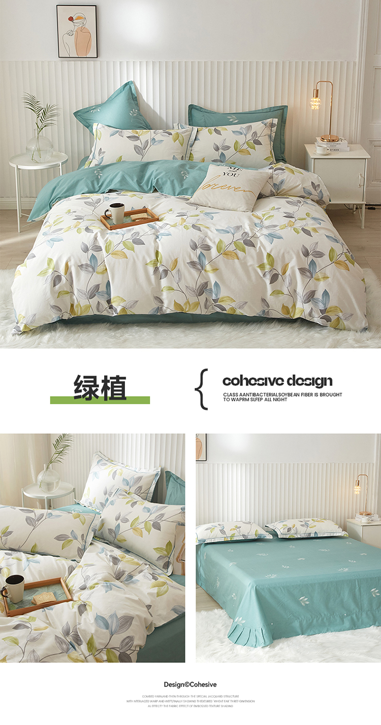 沐白家居 2023全棉13376全棉印花四件套 绿植