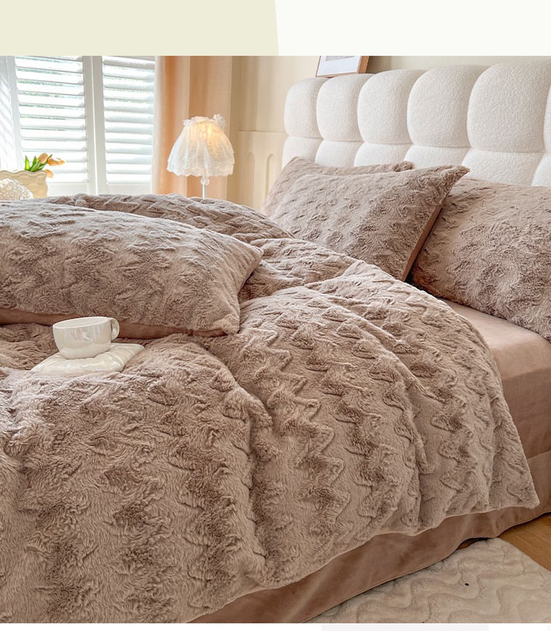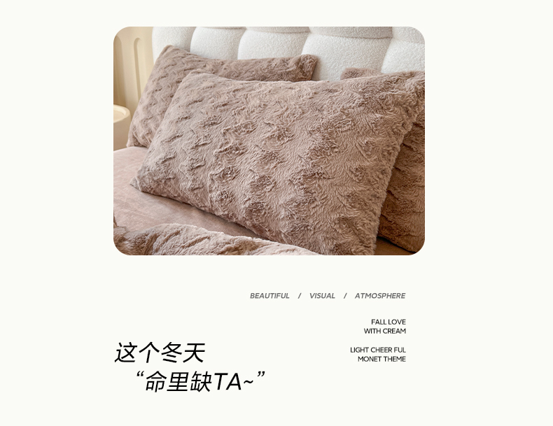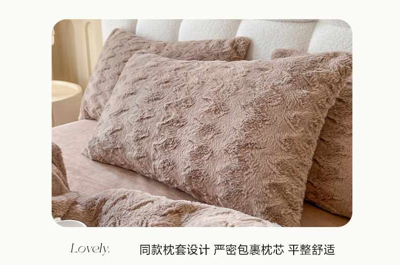 商品名称:麒豆豆 2023新款A版兔毛绒B版素色牛奶绒四件套-归简 归简-奶酪咖