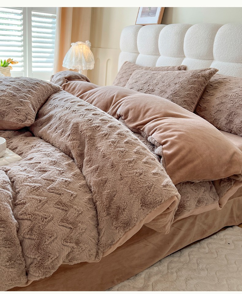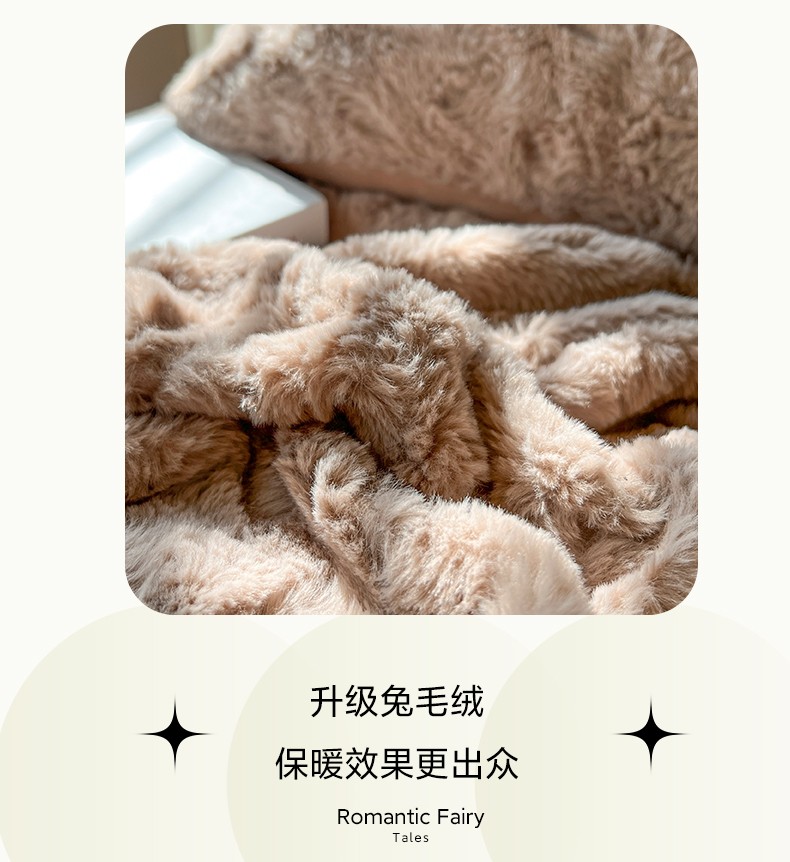 麒豆豆 2023新款A版兔毛绒B版素色牛奶绒四件套-归简 归简-奶酪咖