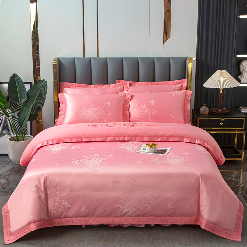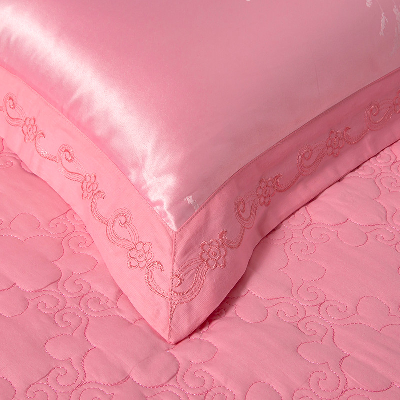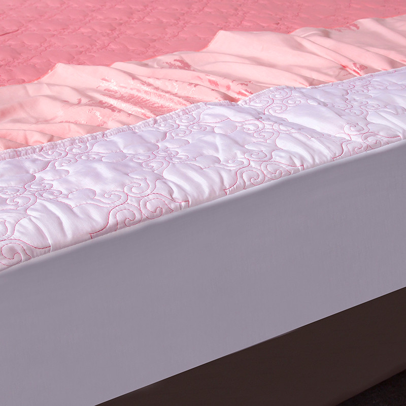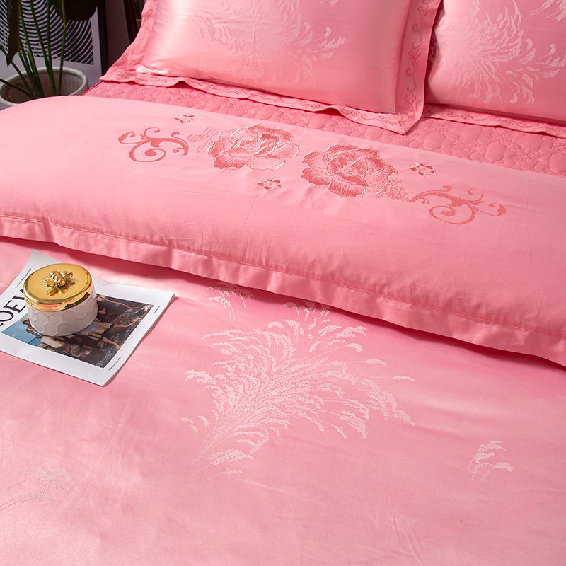 福丽莱家纺 2023新款贡缎提花床裙四件套(夹棉)粉妆伊人浅粉