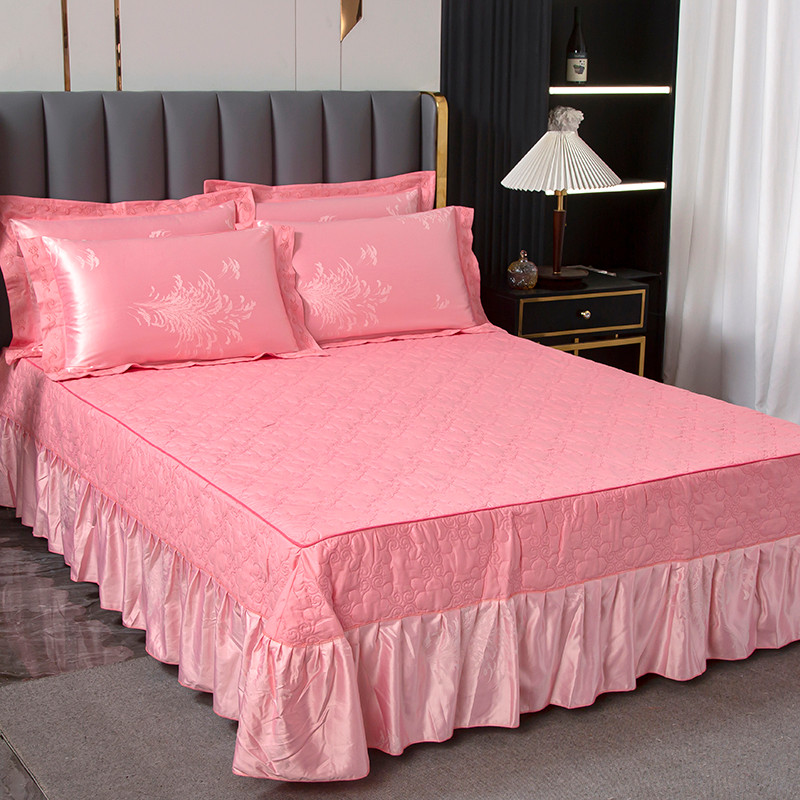 商品名称:福丽莱家纺 2023新款贡缎提花床裙四件套(夹棉)粉妆伊人浅粉