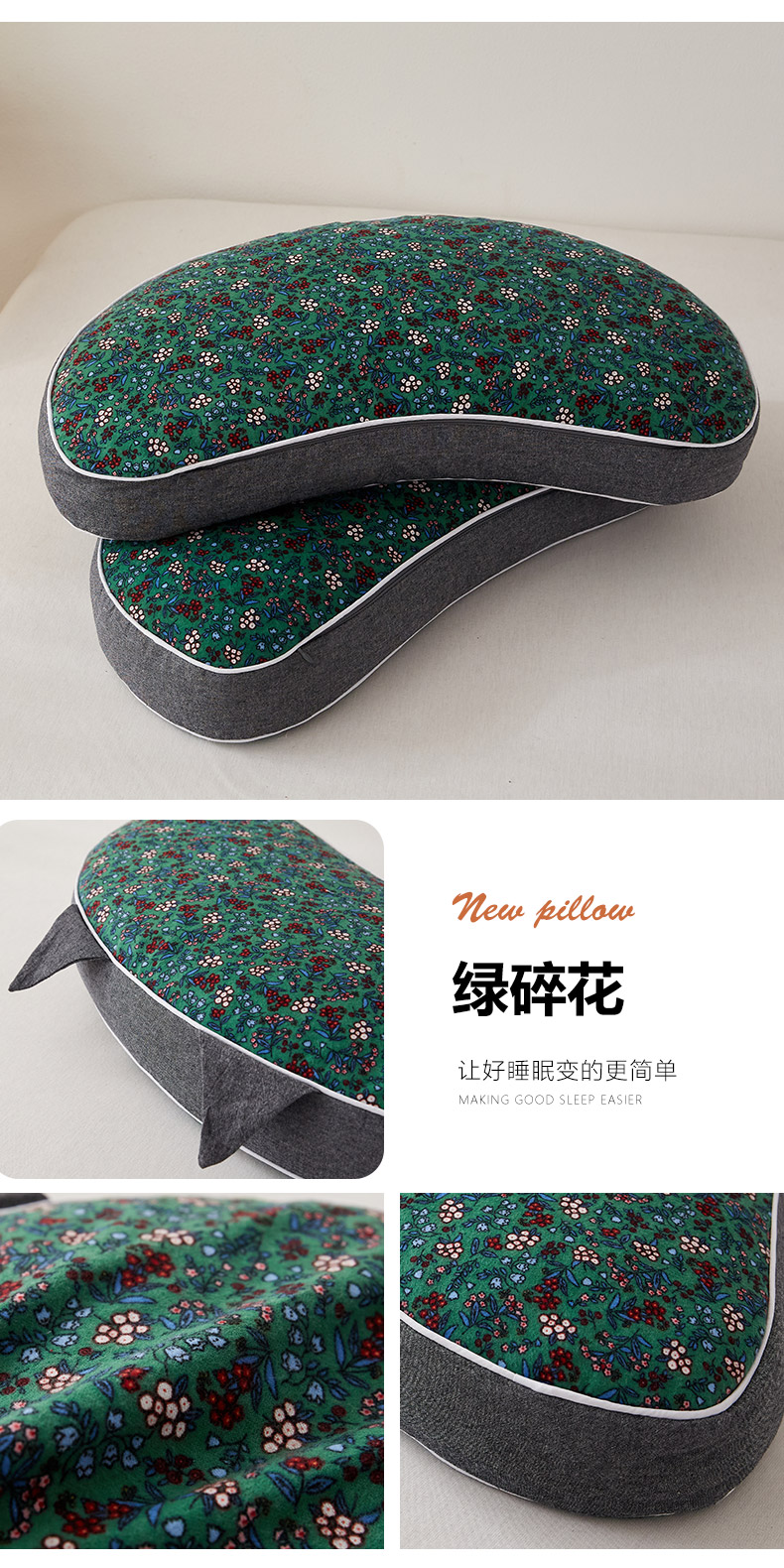 当前位置: 91家纺网 > 商品网购 > 枕头/枕芯/保健枕/颈椎枕 > 普通枕芯 > 乐可 2023新款猫耳朵荞麦枕 猫耳朵荞麦枕-绿碎花【单只装】
