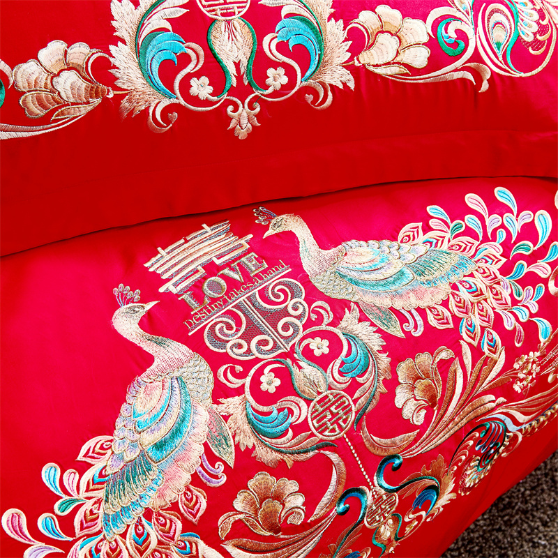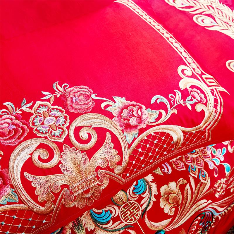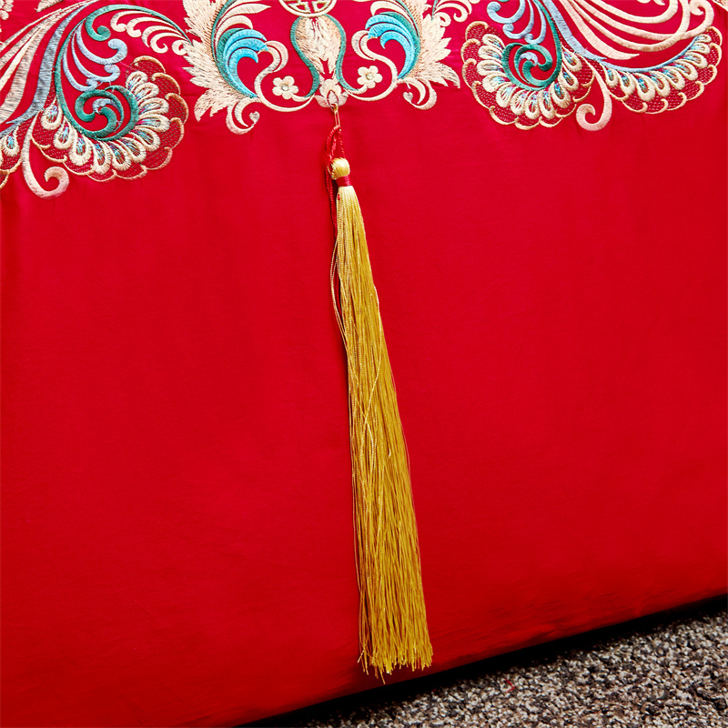 当前位置: 91家纺网 > 商品网购 > 床品套件 > 四件套 > 婚庆四件套 > 布乐意 2025新款全棉绣花大红婚庆四件套多件套直播 凤舞九天