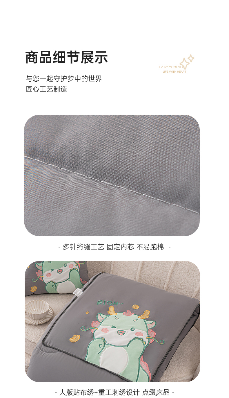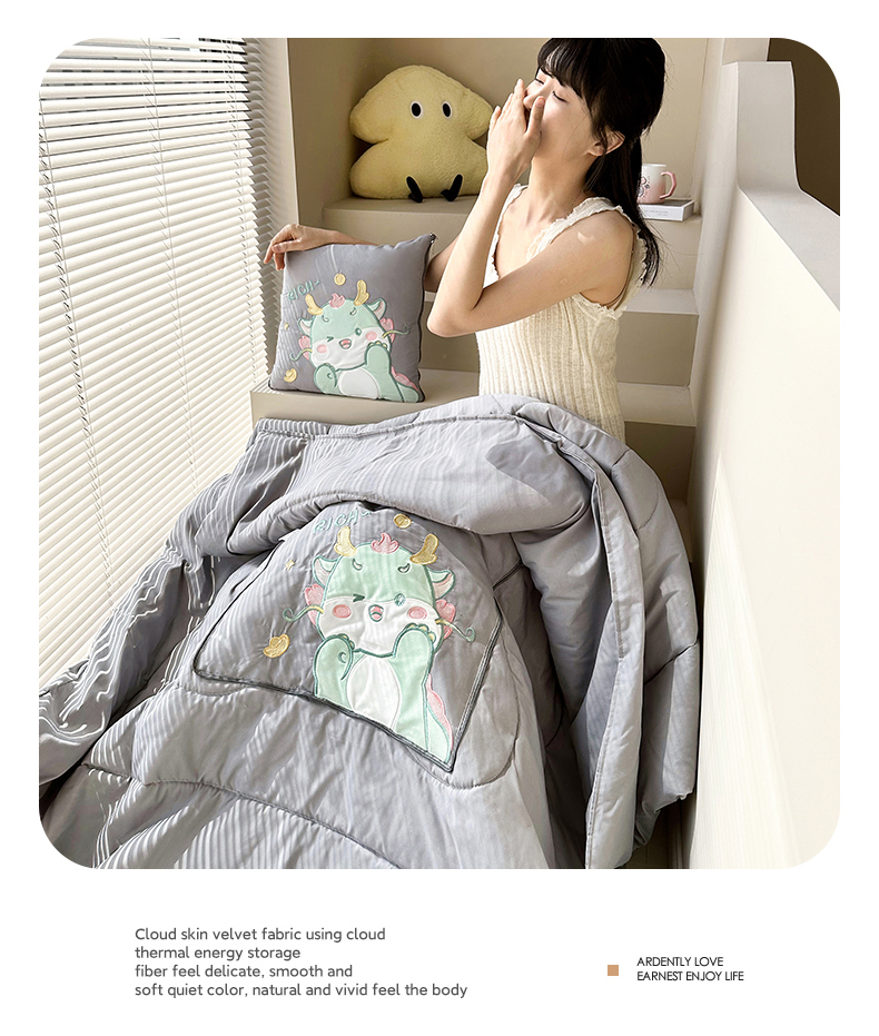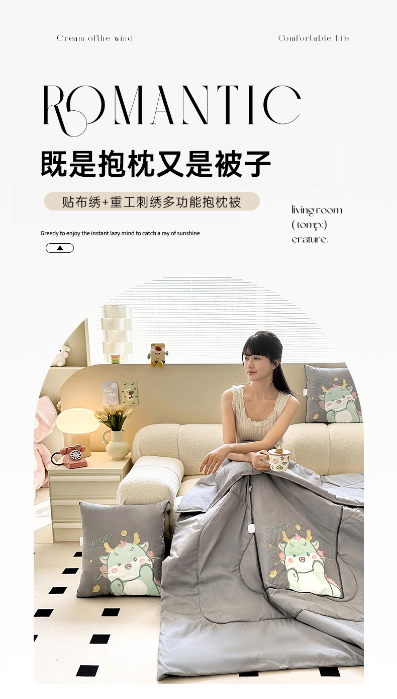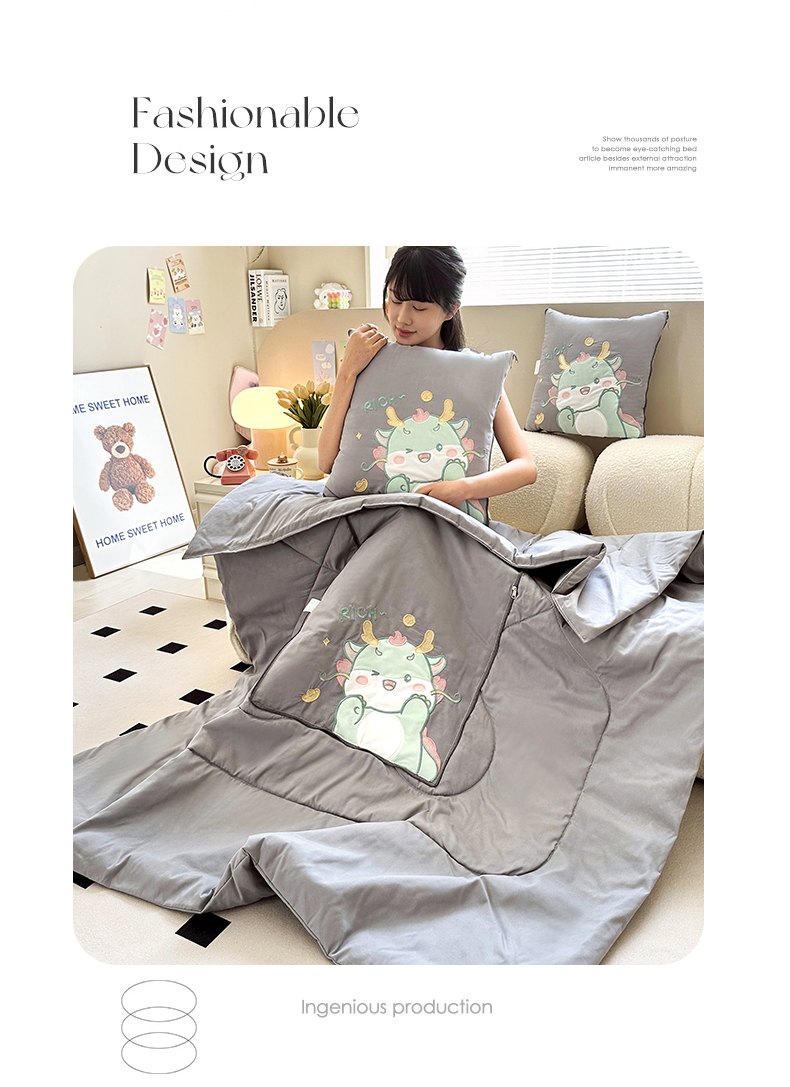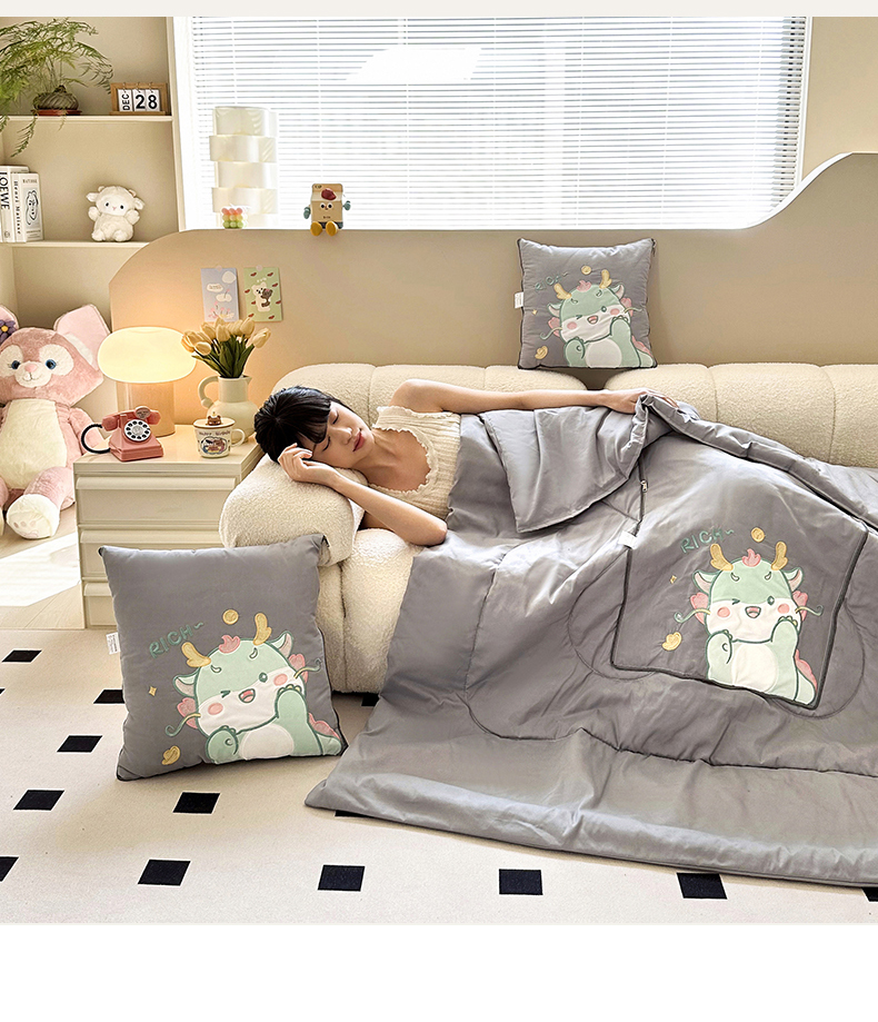商品名称:铭宣家居 2024新款贴布绣+重工刺绣多功能抱枕被系列 财运兴龍 财运兴龍-灰色