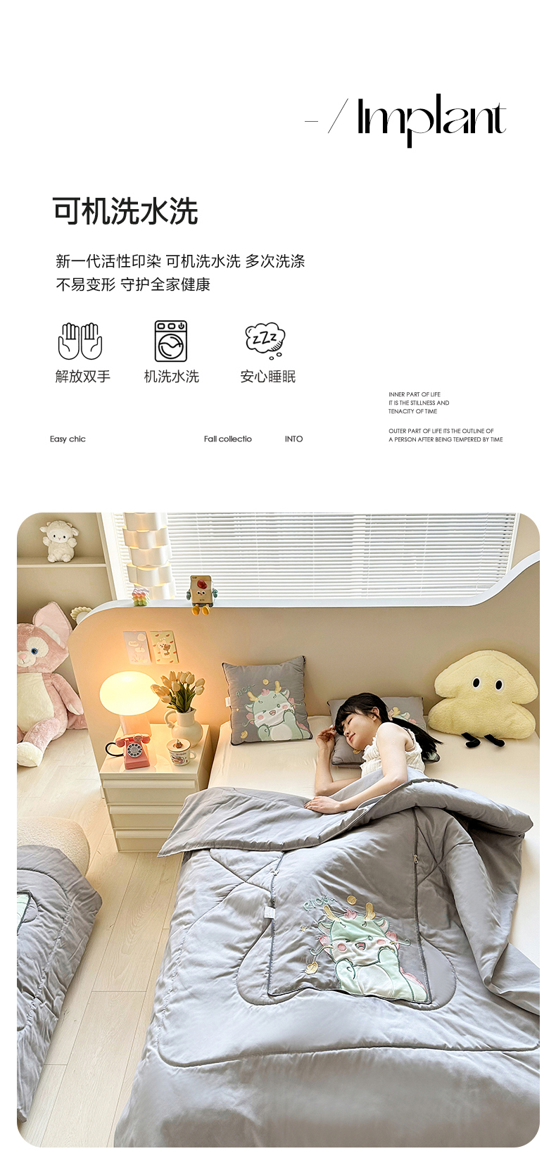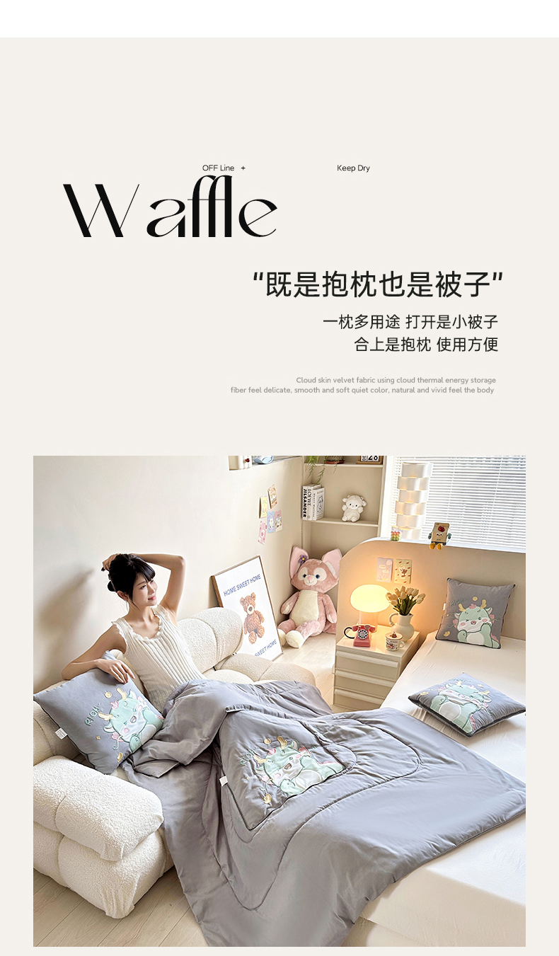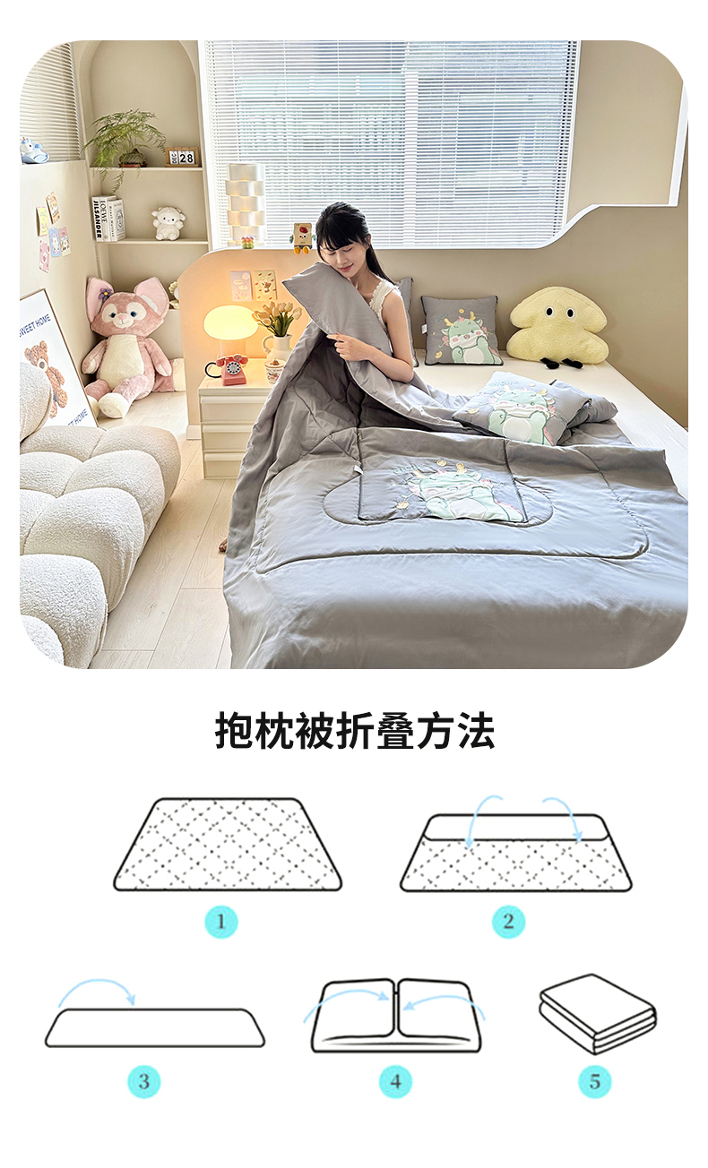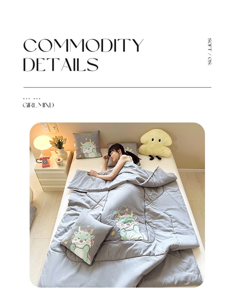 商品名称:铭宣家居 2024新款贴布绣+重工刺绣多功能抱枕被系列 财运兴龍 财运兴龍-灰色