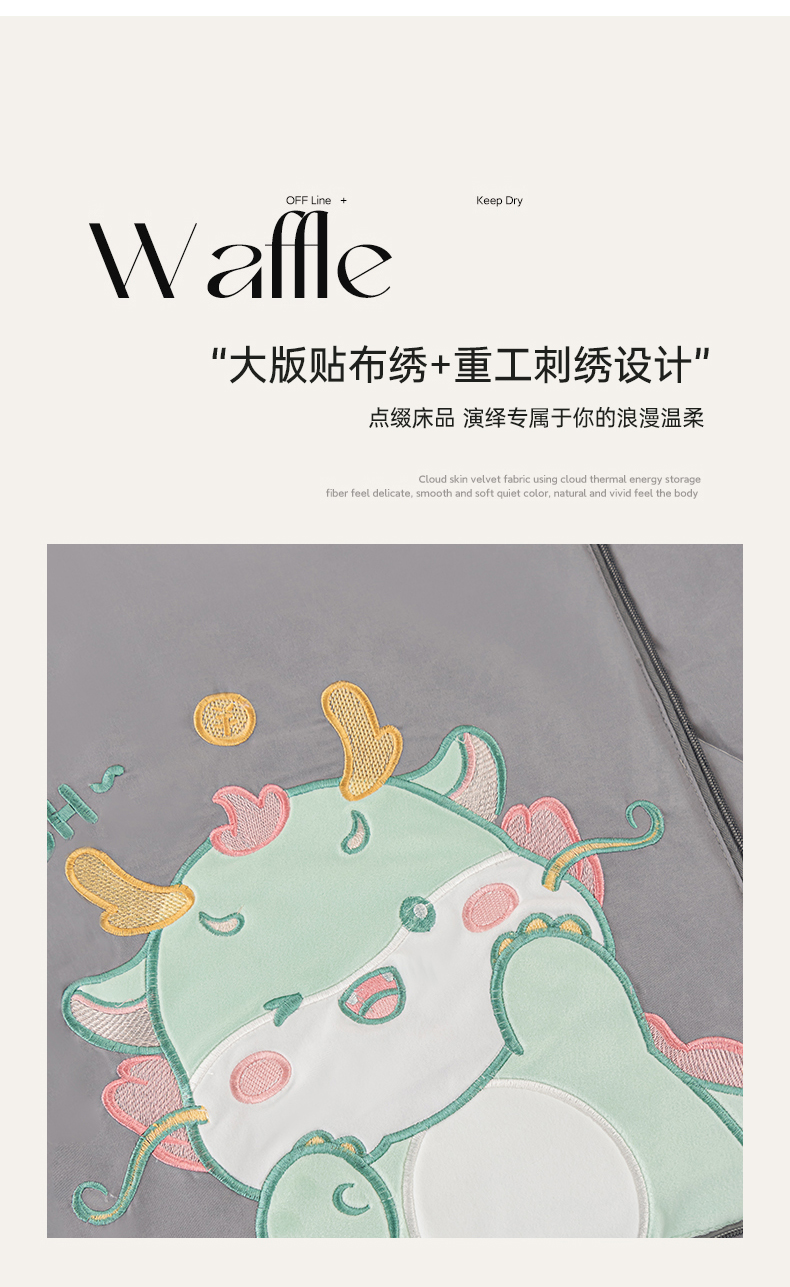 铭宣家居 2024新款贴布绣+重工刺绣多功能抱枕被系列 财运兴龍 财运兴龍-灰色