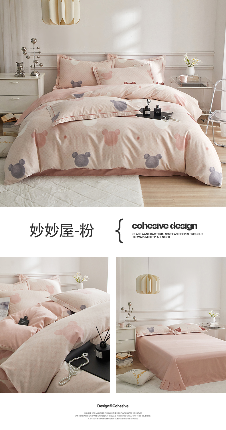 当前位置: 91家纺网 > 商品网购 > 床品套件 > 四件套 > 全棉普通四件套 > 沐白家居 2024新款全棉生态磨毛印花四件套系列 妙妙屋-粉