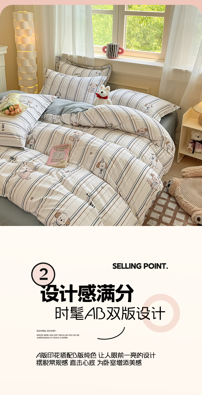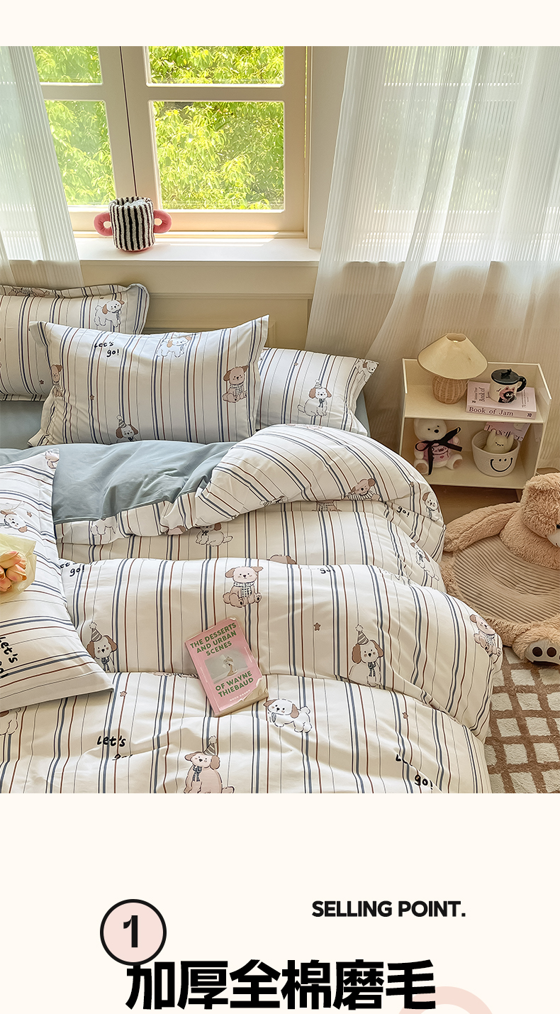 当前位置: 91家纺网 > 商品网购 > 床品套件 > 四件套 > 全棉普通四件套 > 涵宸家纺 2024新款加厚全棉磨毛印花四件套--罗马系列 A趣味小狗