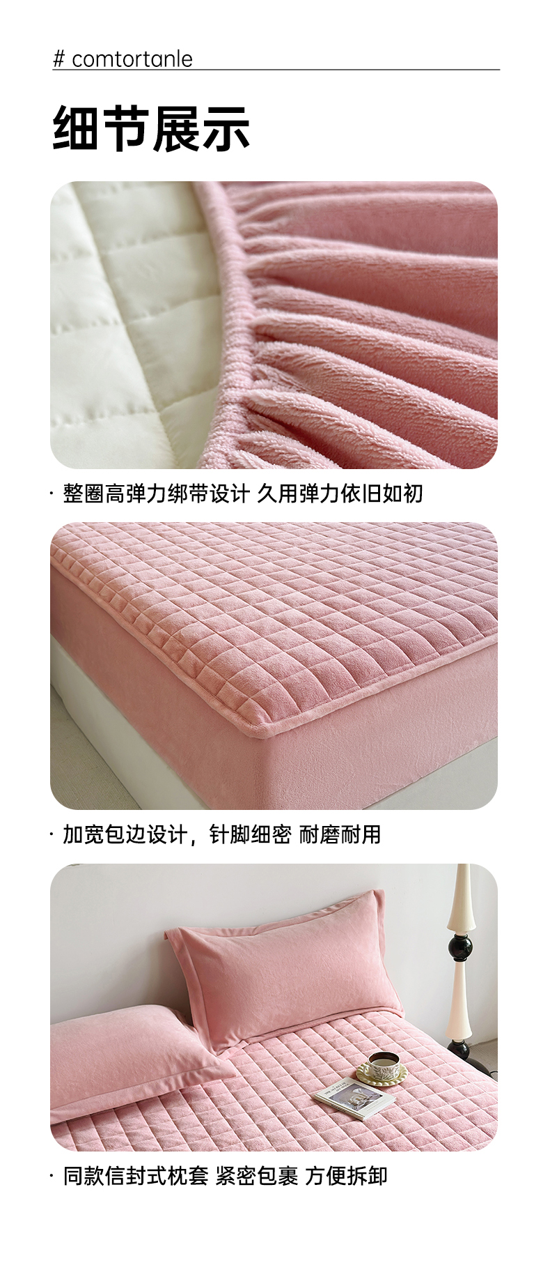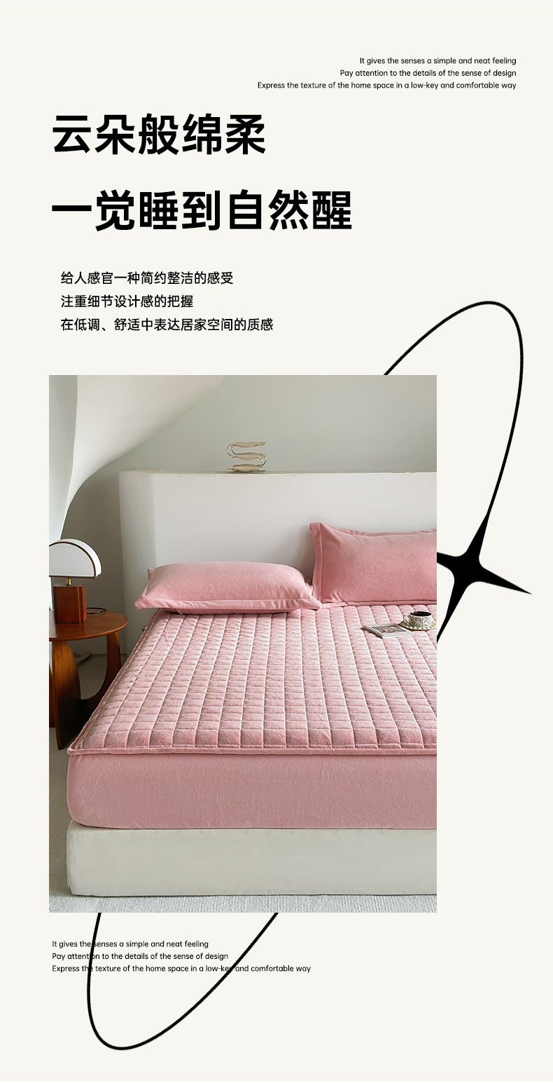 商品名称:寝柔家纺 2024冬季新款纯色消光加厚牛奶绒夹棉床笠 粉色