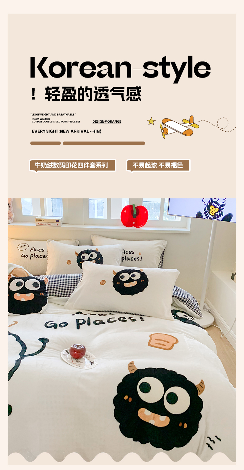 当前位置: 91家纺网 > 商品网购 > 床品套件 > 四件套 > 牛奶绒四件套 > 澳萝拉 2024新款牛奶绒数码印花四件套 黑煤球