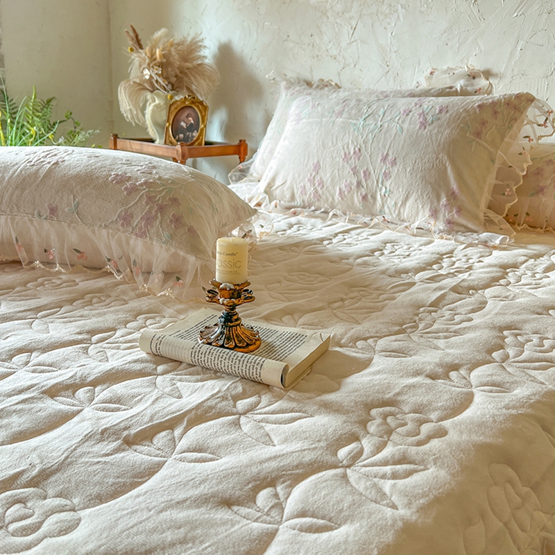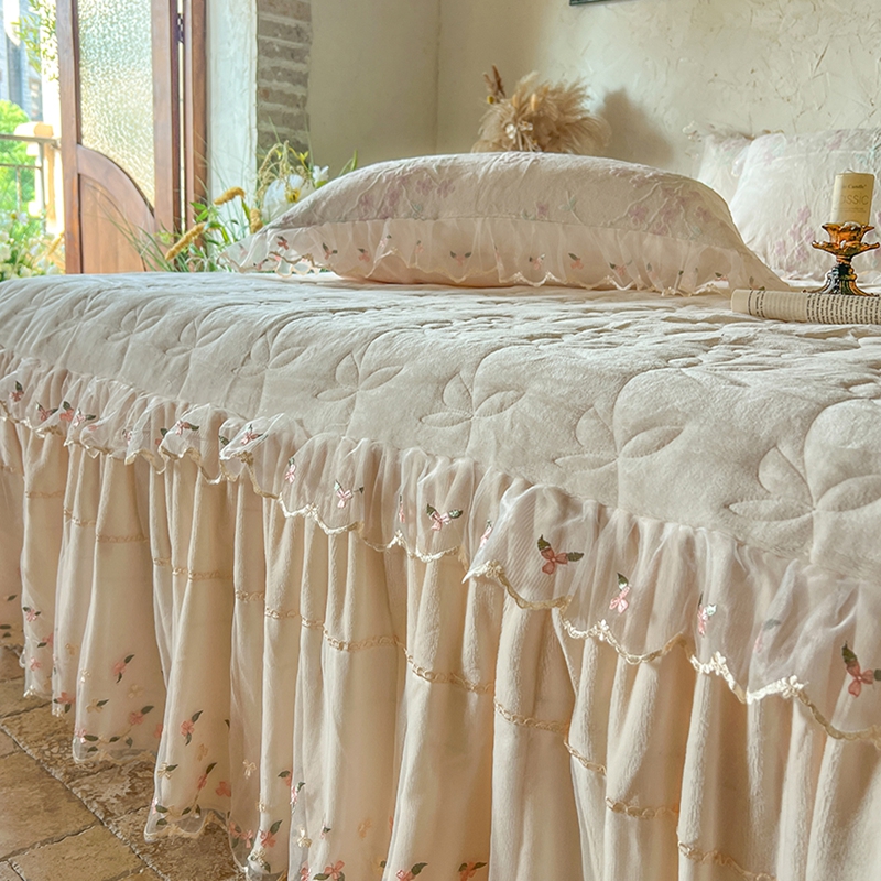 麒豆豆 2024新款高克重雕花绒牛奶绒单床裙-花屿 花屿-奶昔杏