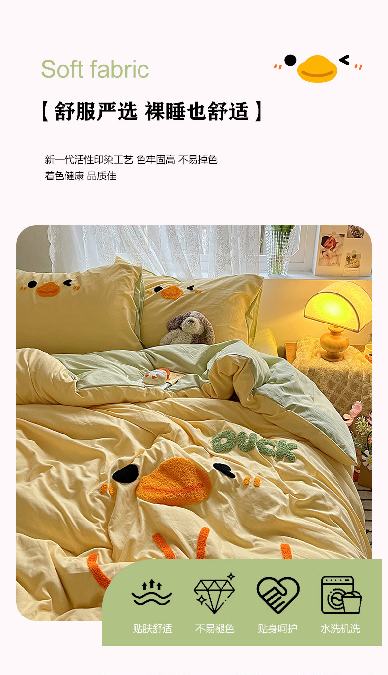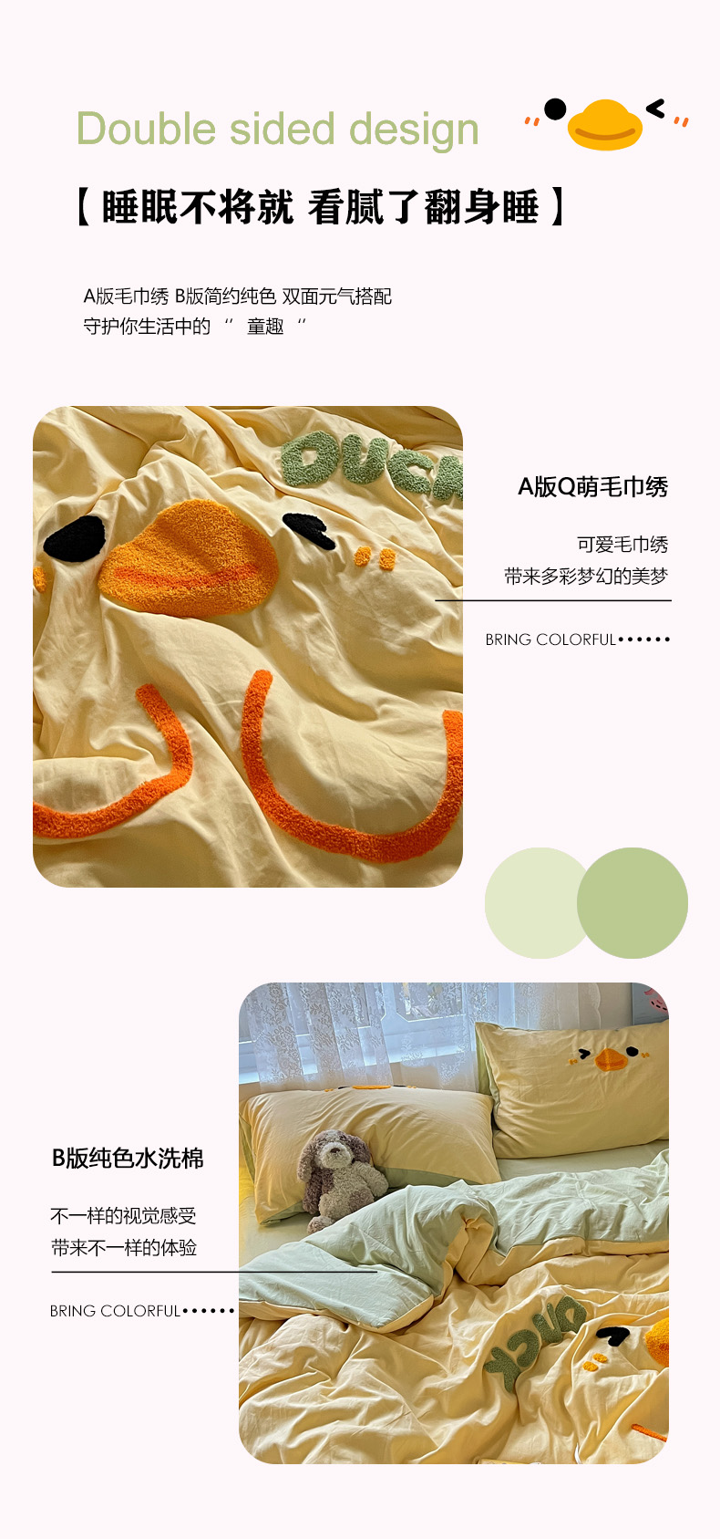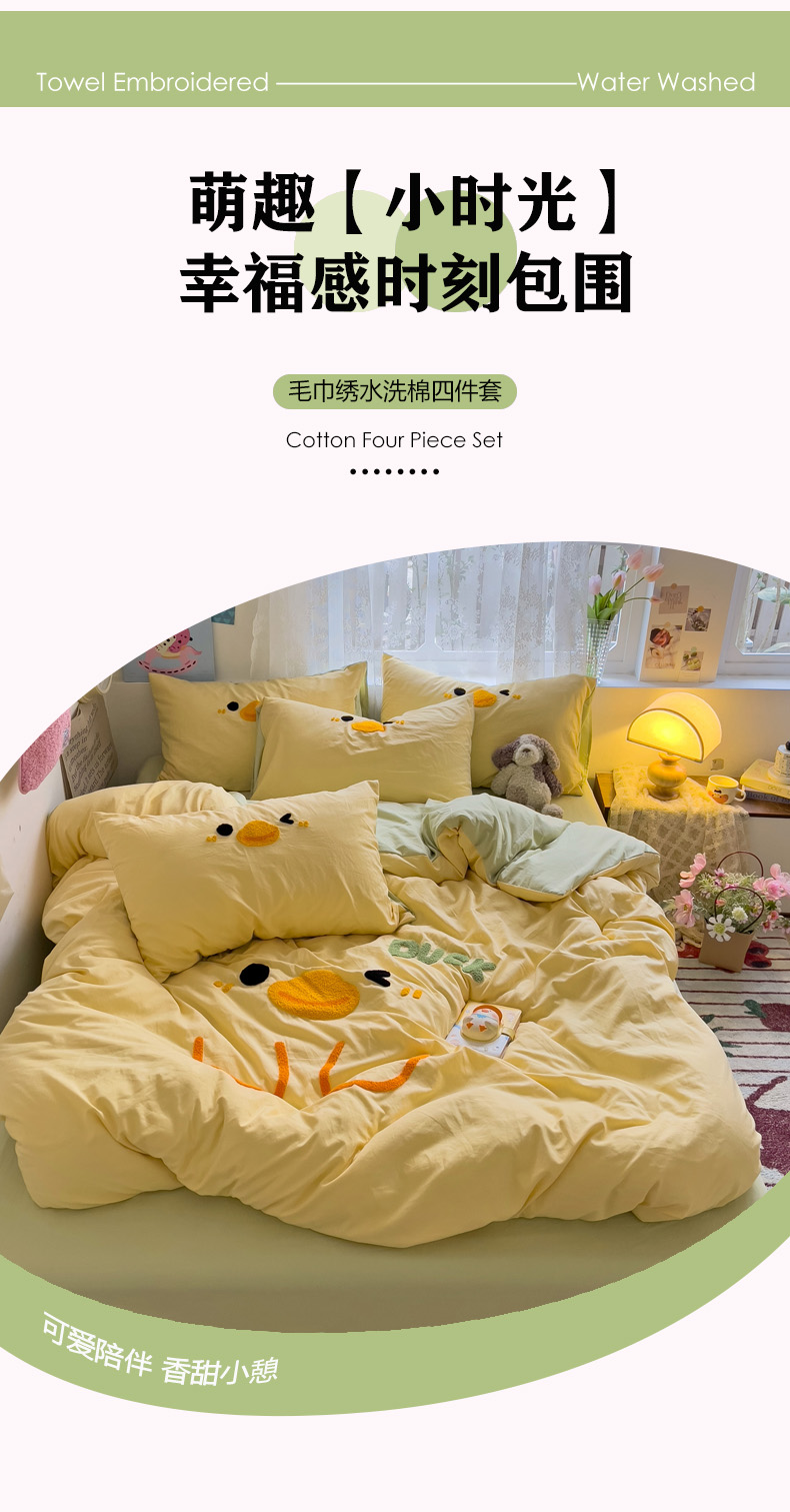 当前位置: 91家纺网 > 商品网购 > 床品套件 > 四件套 > 毛巾绣四件套 > 曼谷家纺 2025新款软糯毛巾绣水洗棉四件套-【买家秀联系微信】专属版权,质检报告 黄鸭