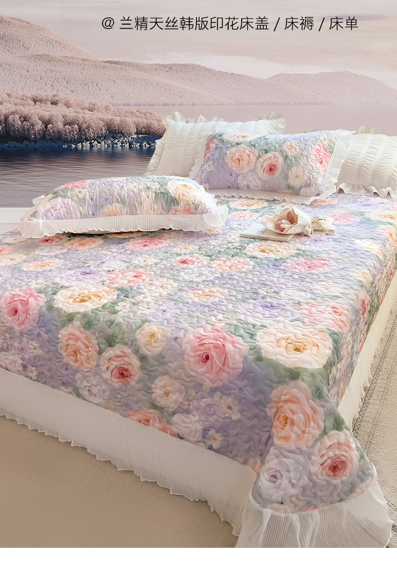 商品名称:兄弟坊 2025 莱赛尔兰精天丝韩版印花床盖床裙床褥 床盖-漪梦