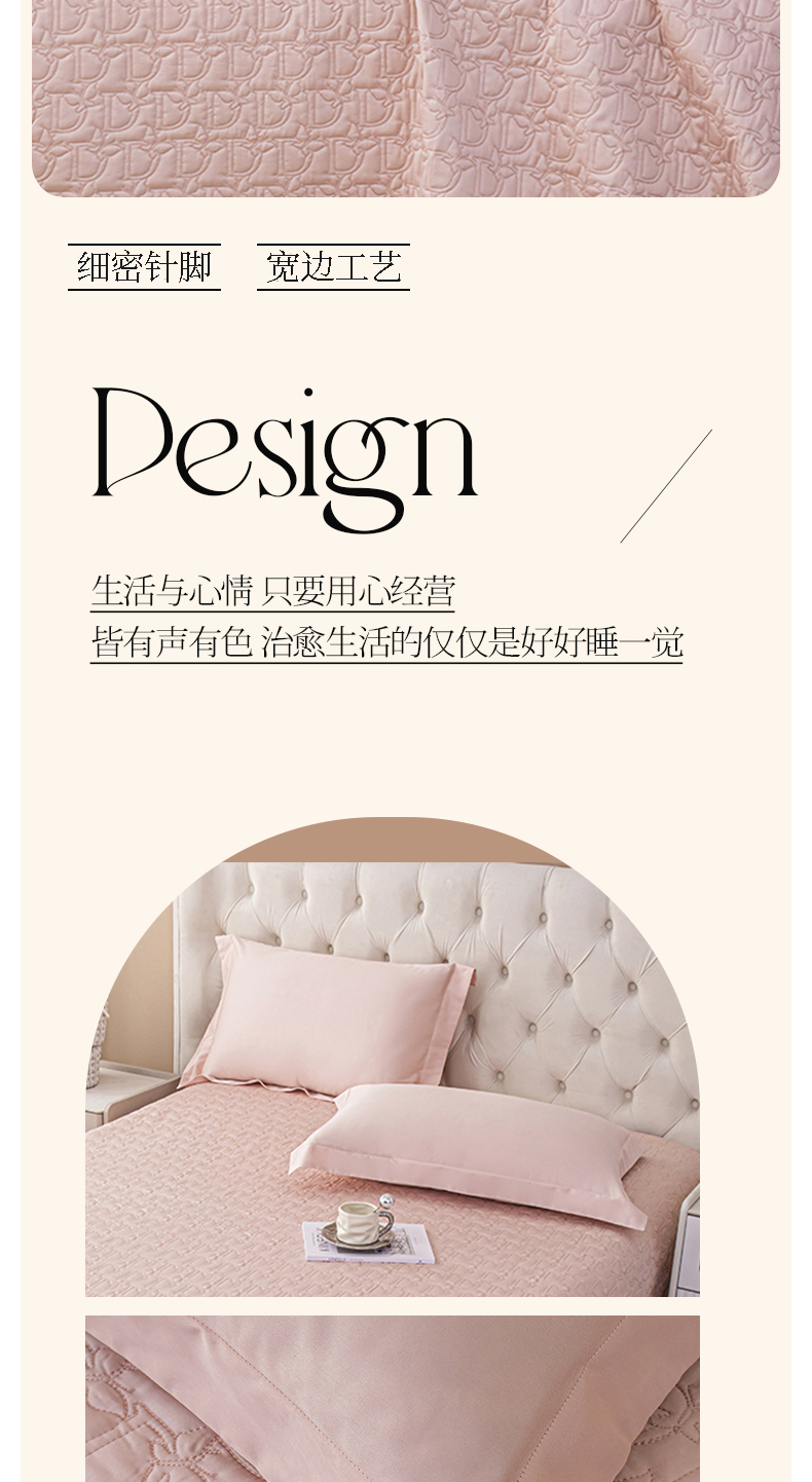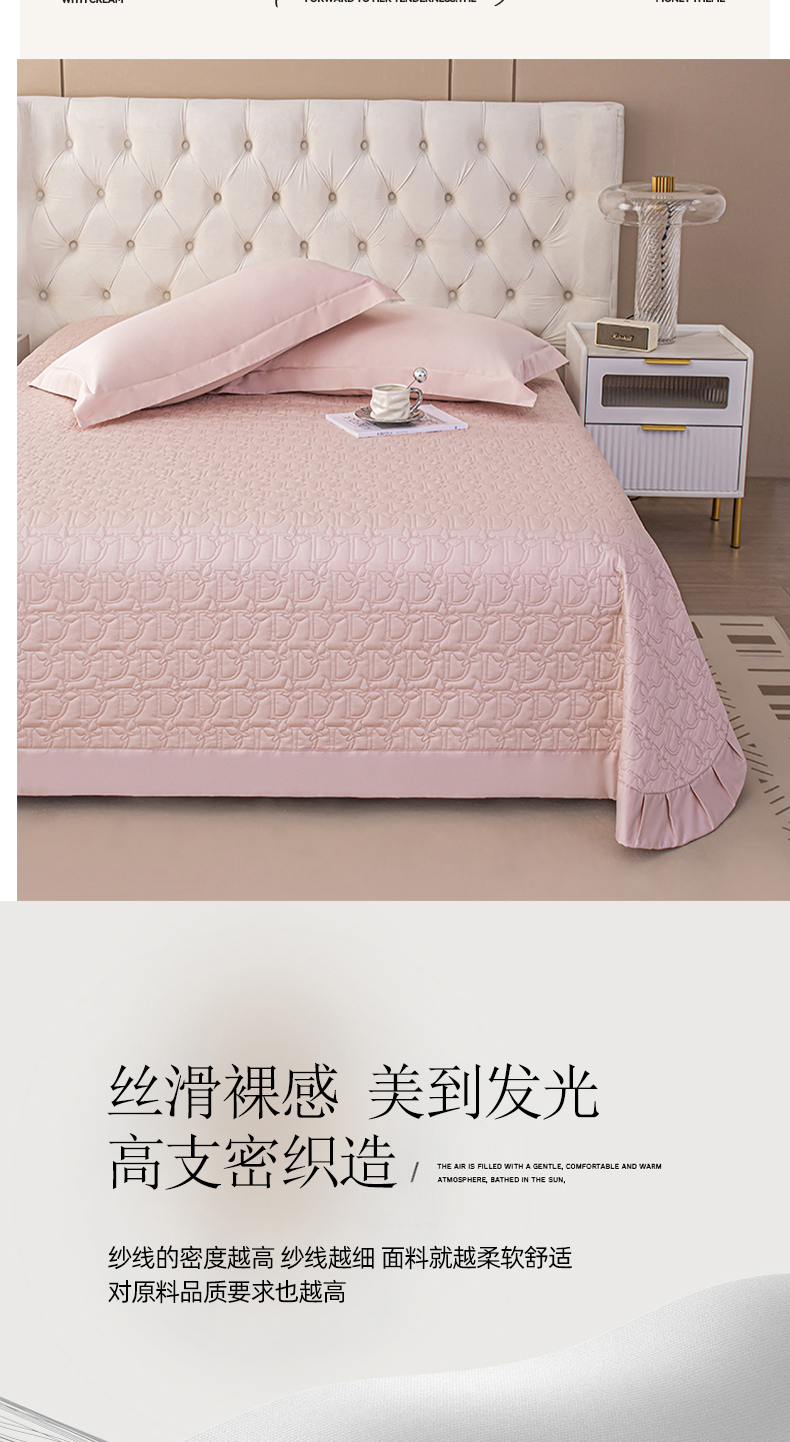 (总)金喜 2024新款100支全棉床盖蚕丝床盖三件套D型绗缝系列,白桃粉,繁花橙,粉雅灰,迷雾金,木槿绿