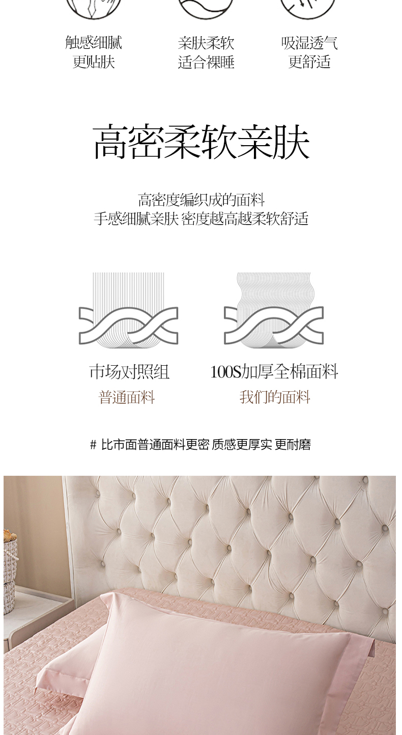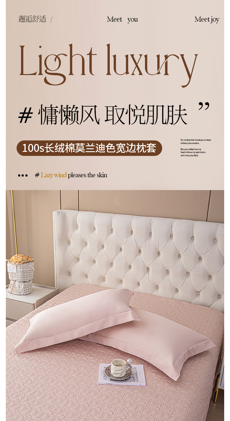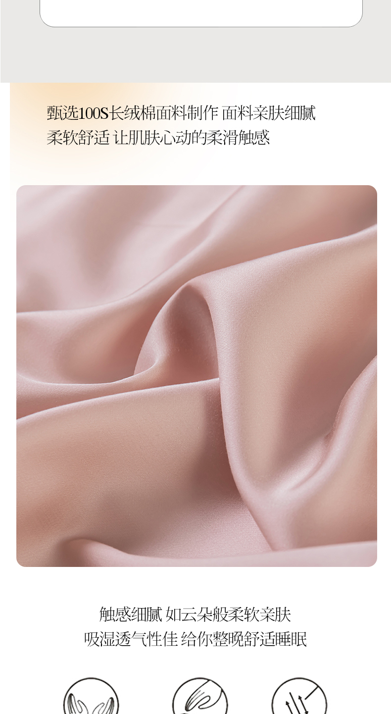 商品名称:金喜2025新款100支全棉枕套宽边工艺100S长绒棉枕头套-莫兰迪色系 白桃粉