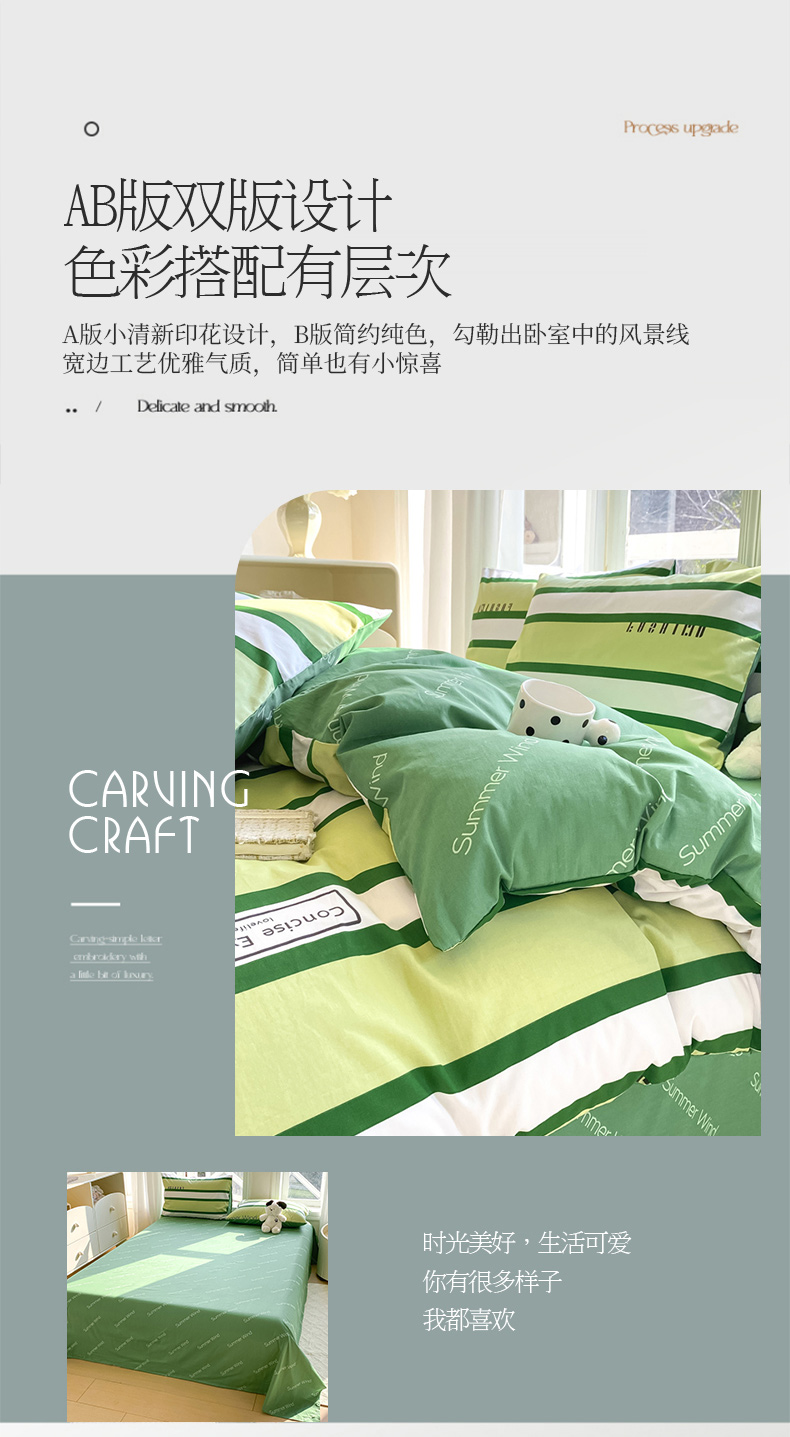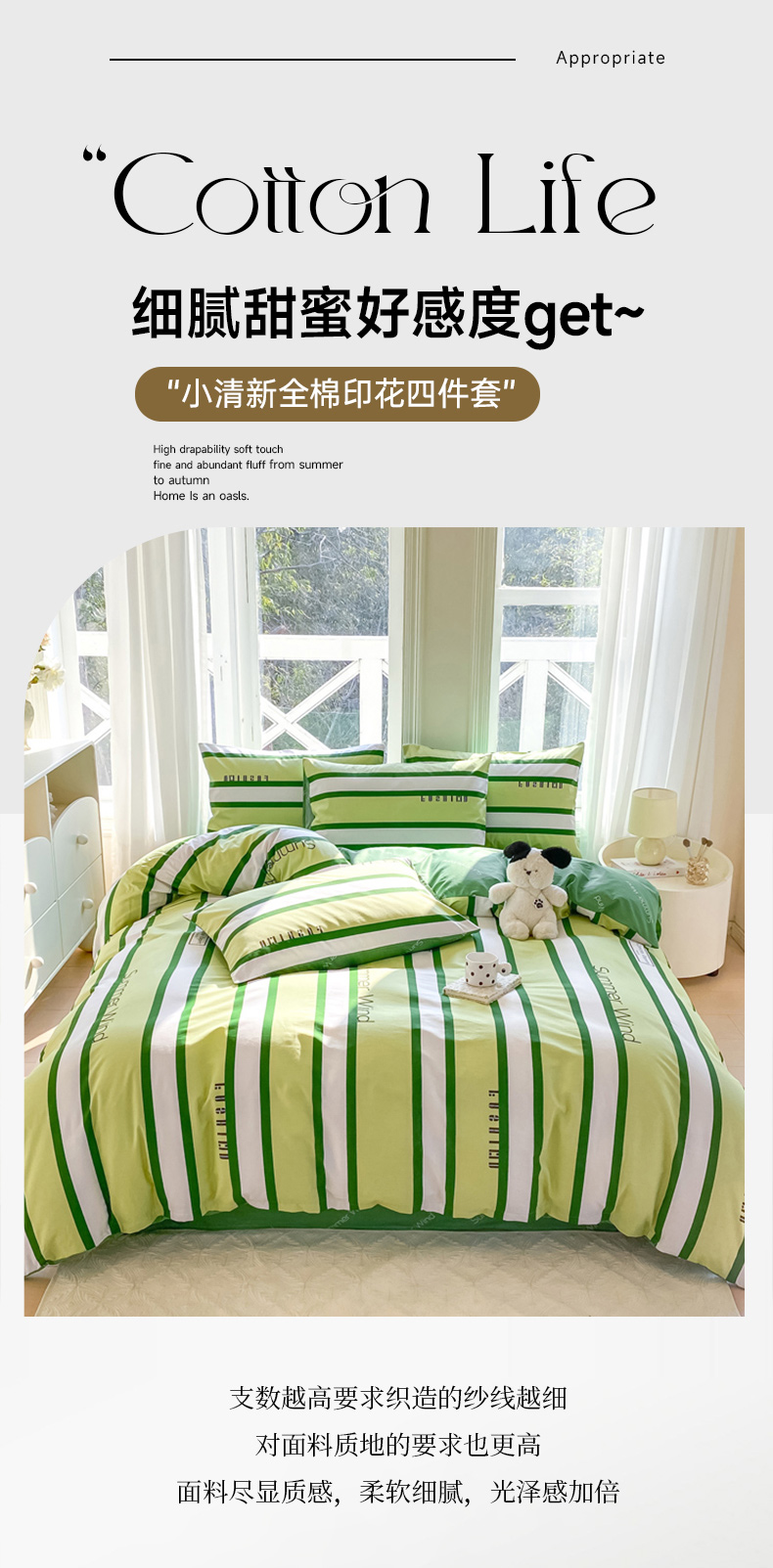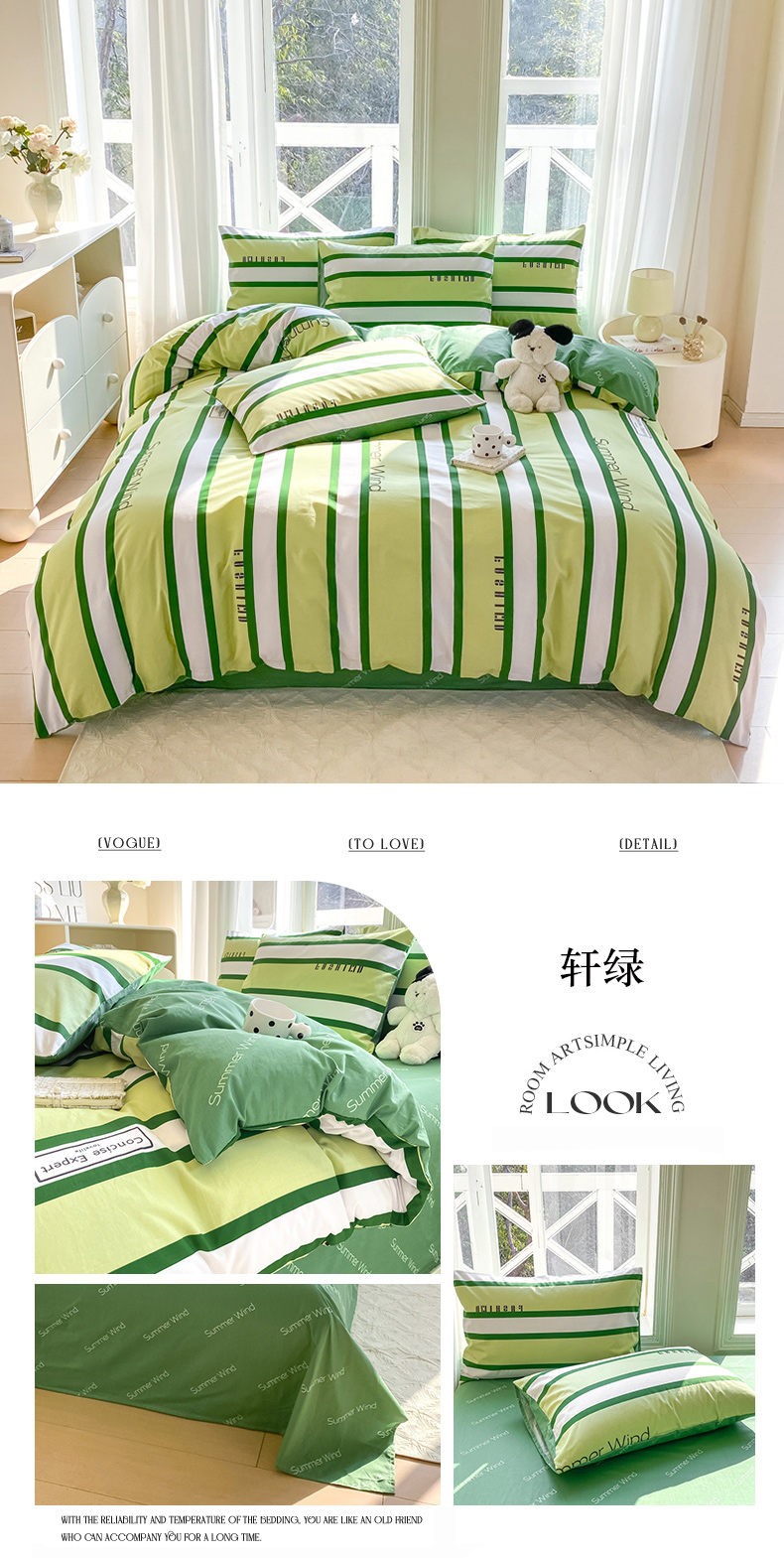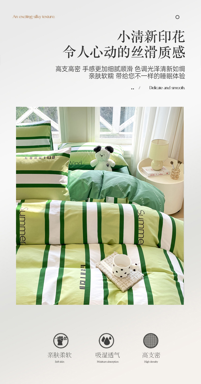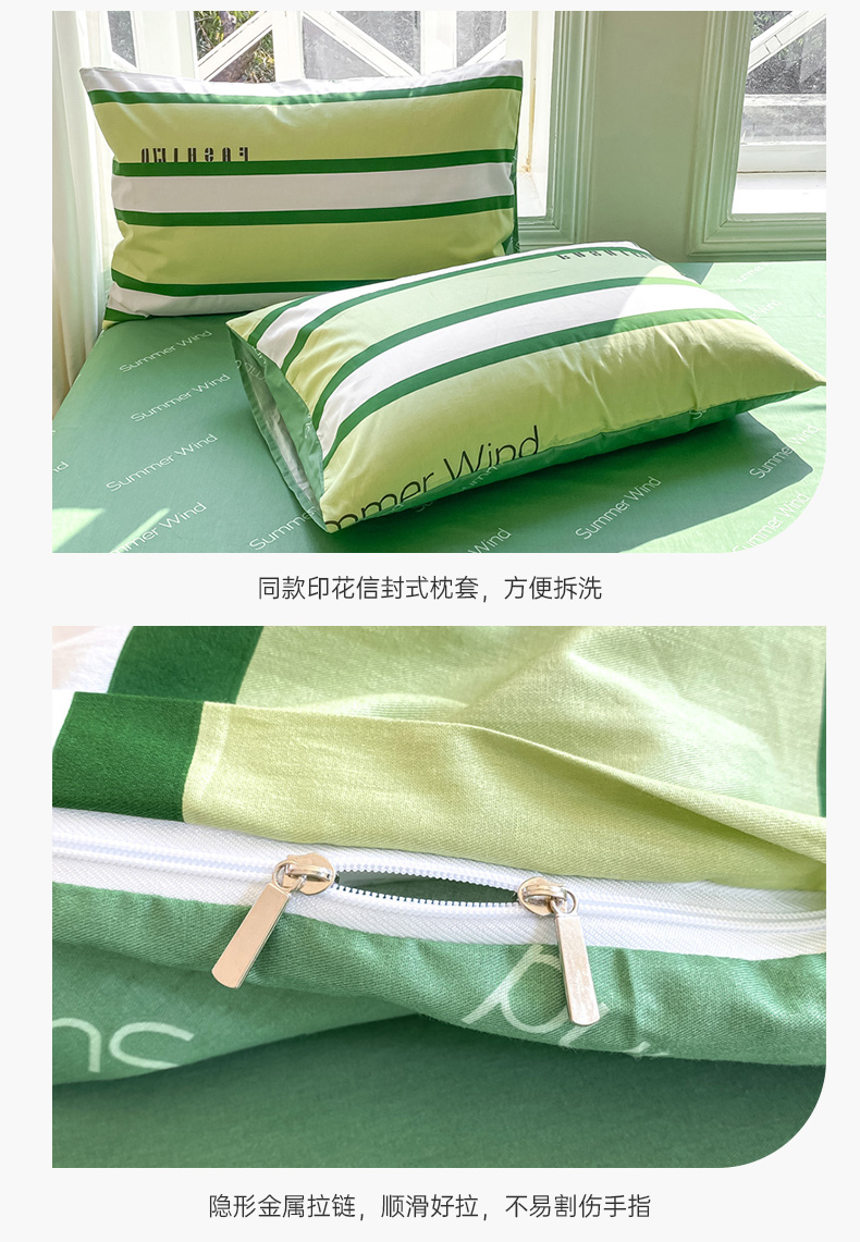 念家居 2025新款直播爆款三件套印花小清新13070全棉四件套 轩绿