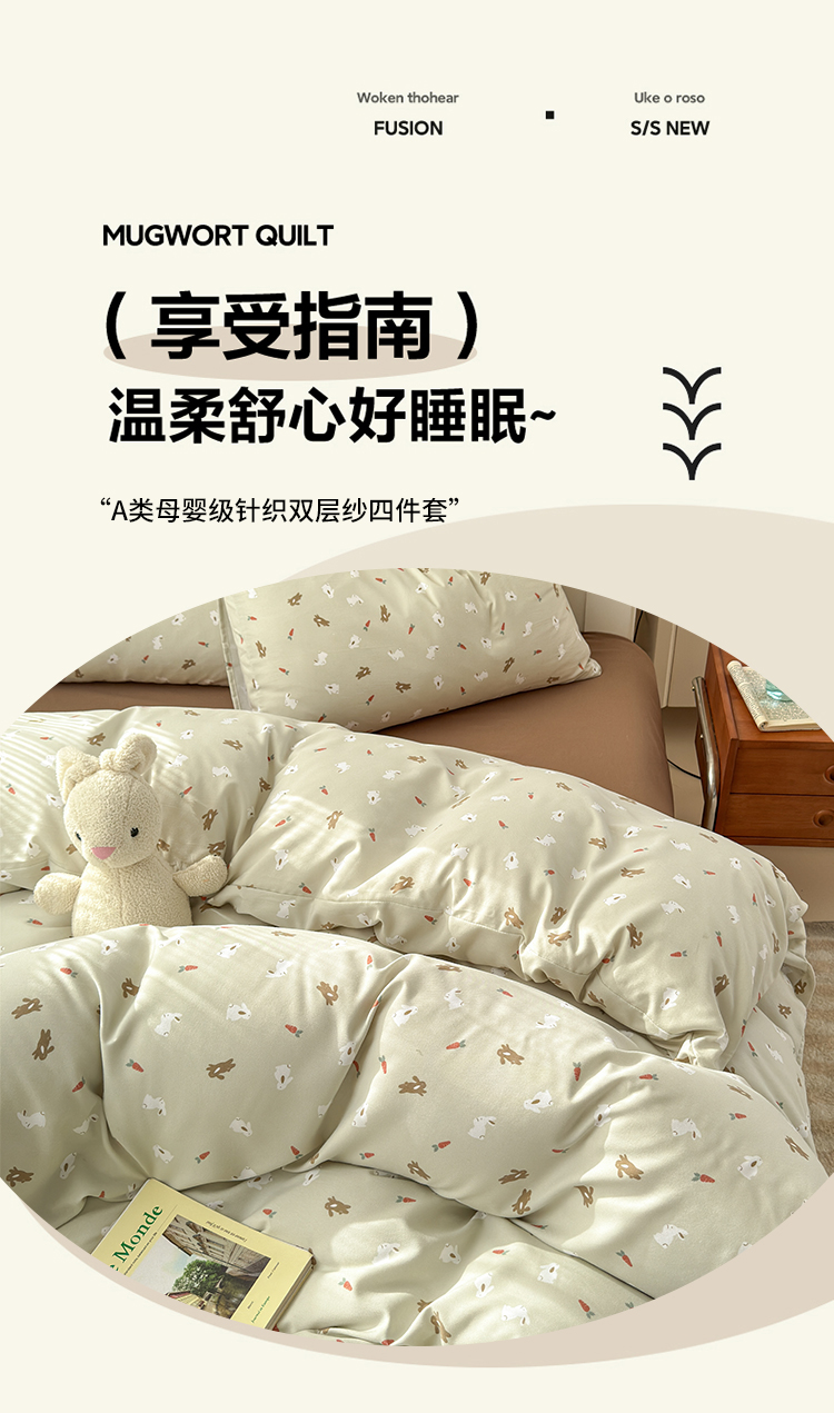 当前位置: 91家纺网 > 商品网购 > 床品套件 > 四件套 > 针织棉四件套 > 冕悠家纺 2025新款热款A类高克重针织双层纱四件套系列 (提供买家秀) 萝卜兔