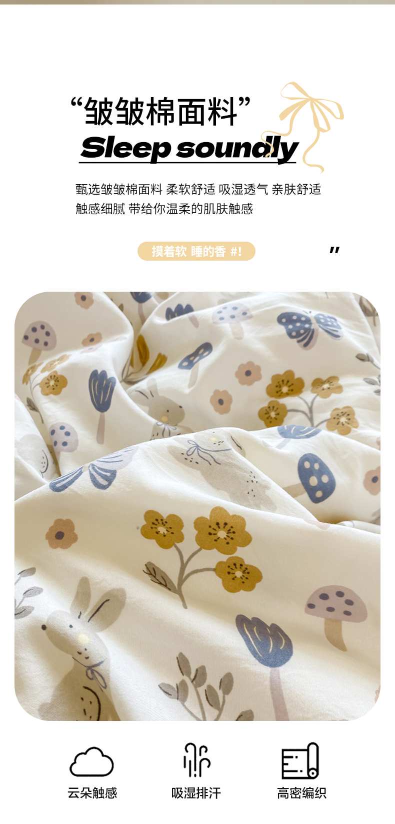 当前位置: 91家纺网 > 商品网购 > 床品套件 > 四件套 > 全棉普通四件套 > 【提供买家秀】2025直播云感皱皱棉四件套水洗棉简约风小碎花被套床笠三件套-叠拍图 童话森林