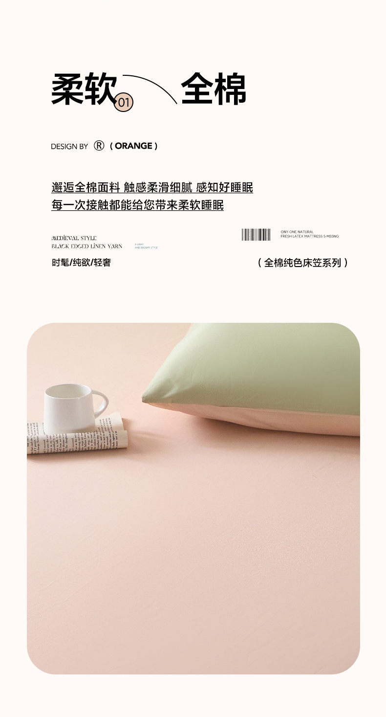 商品名称:乐美家纺 2025新款全棉纯棉纯色床笠床笠笠件单床笠 米杏