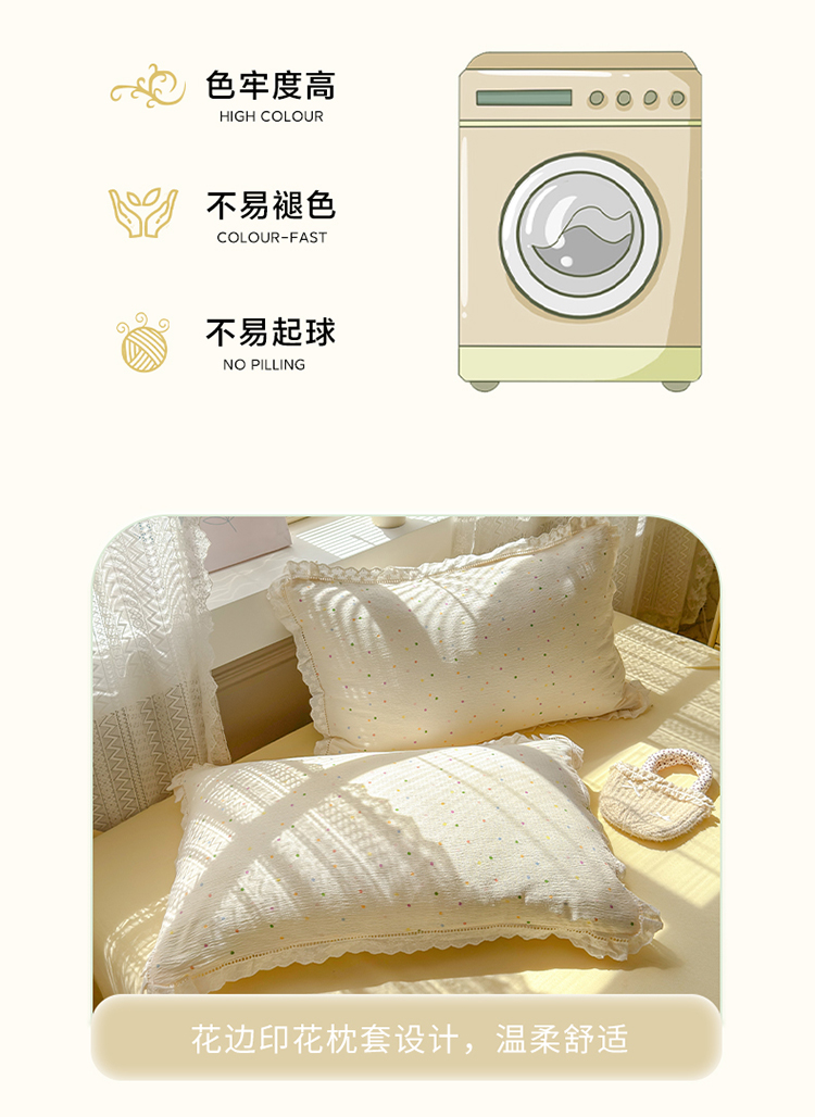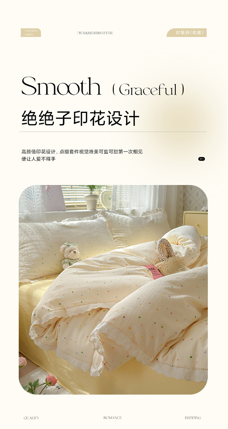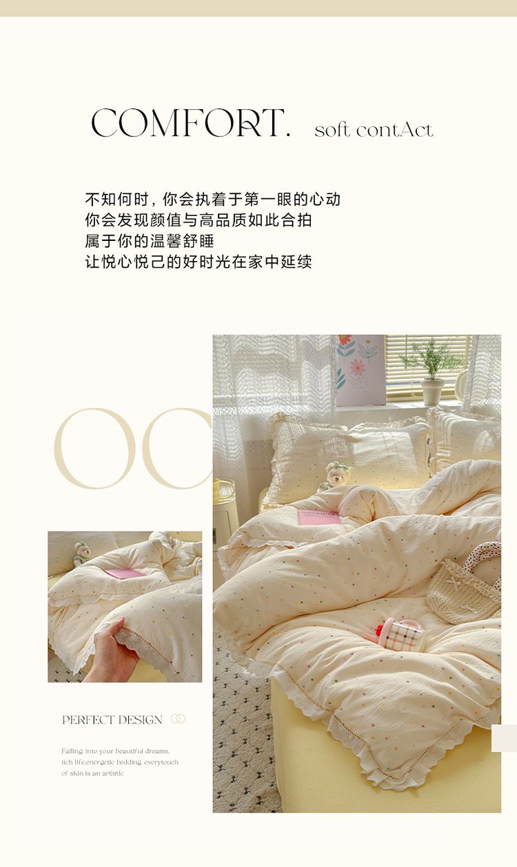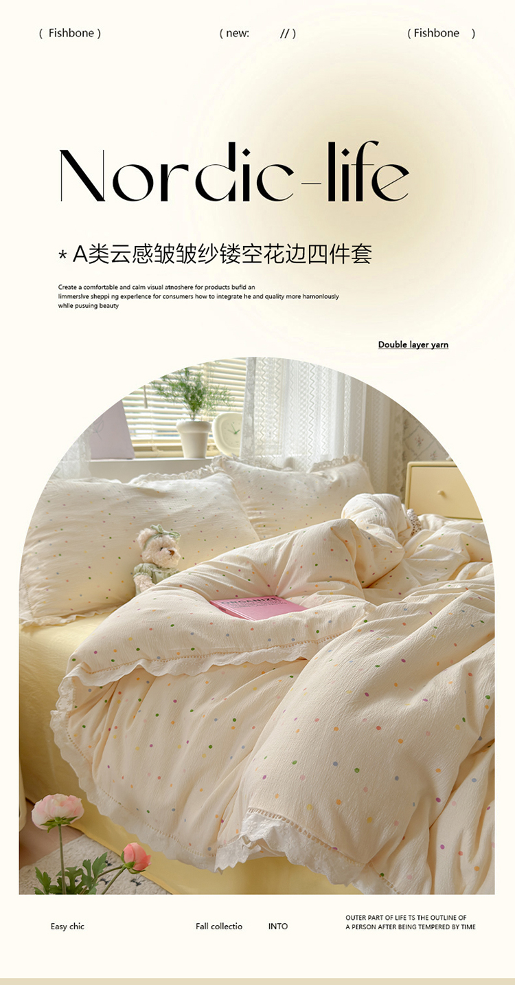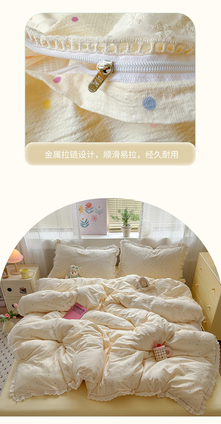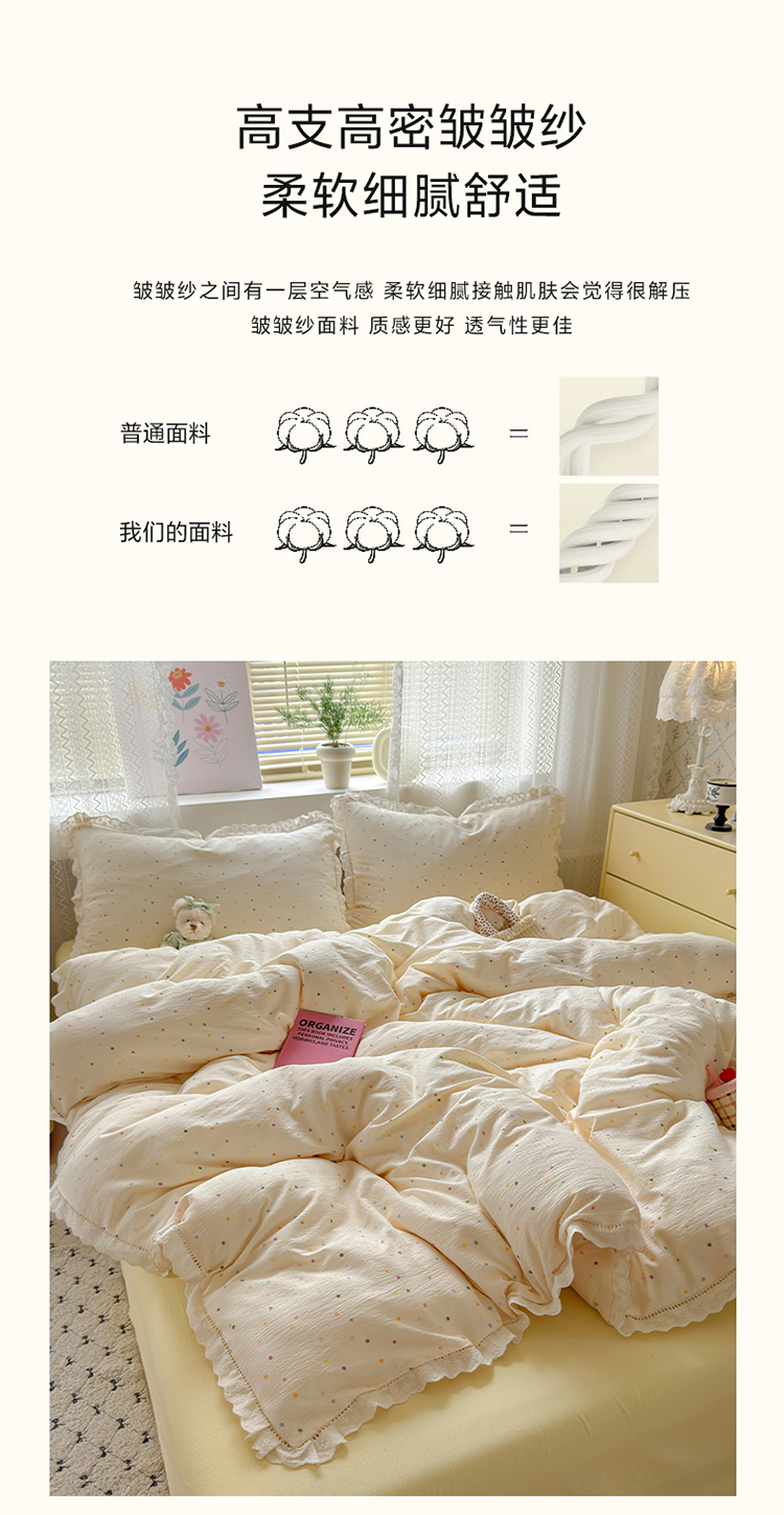 当前位置: 91家纺网 > 商品网购 > 床品套件 > 四件套 > 其它四件套 > 喜颜 2025新款爆款云感提花皱皱纱全棉镂空花边四件套学生宿舍三件套 镂空花边-波点炫彩