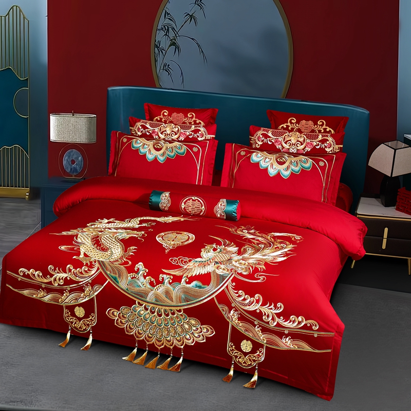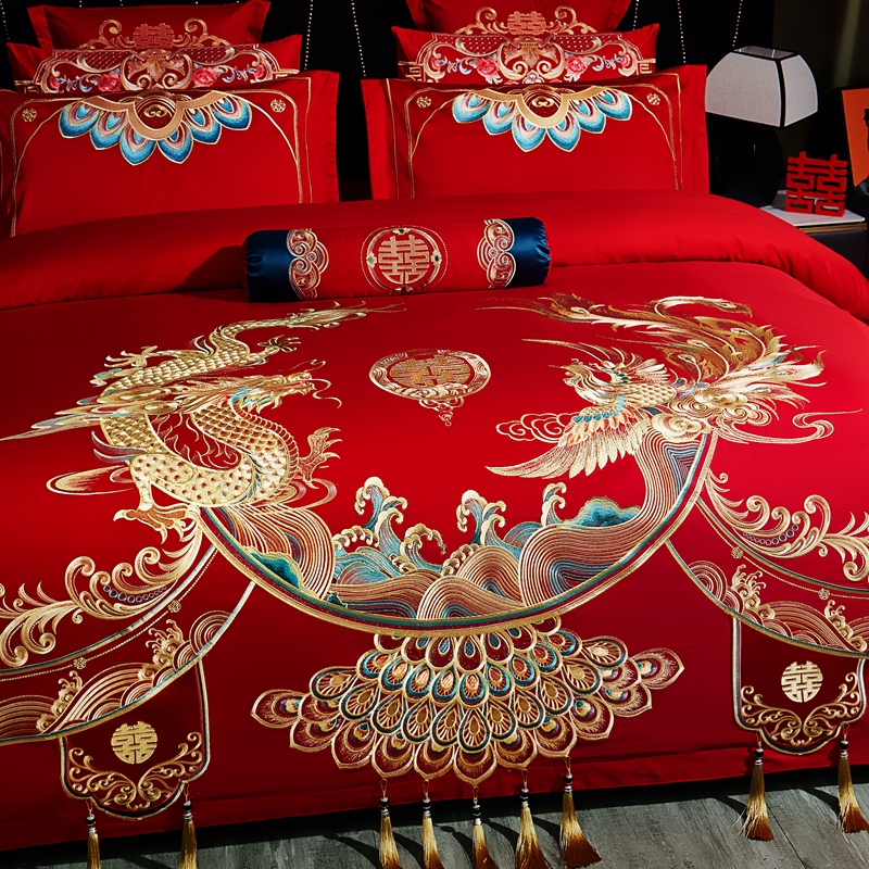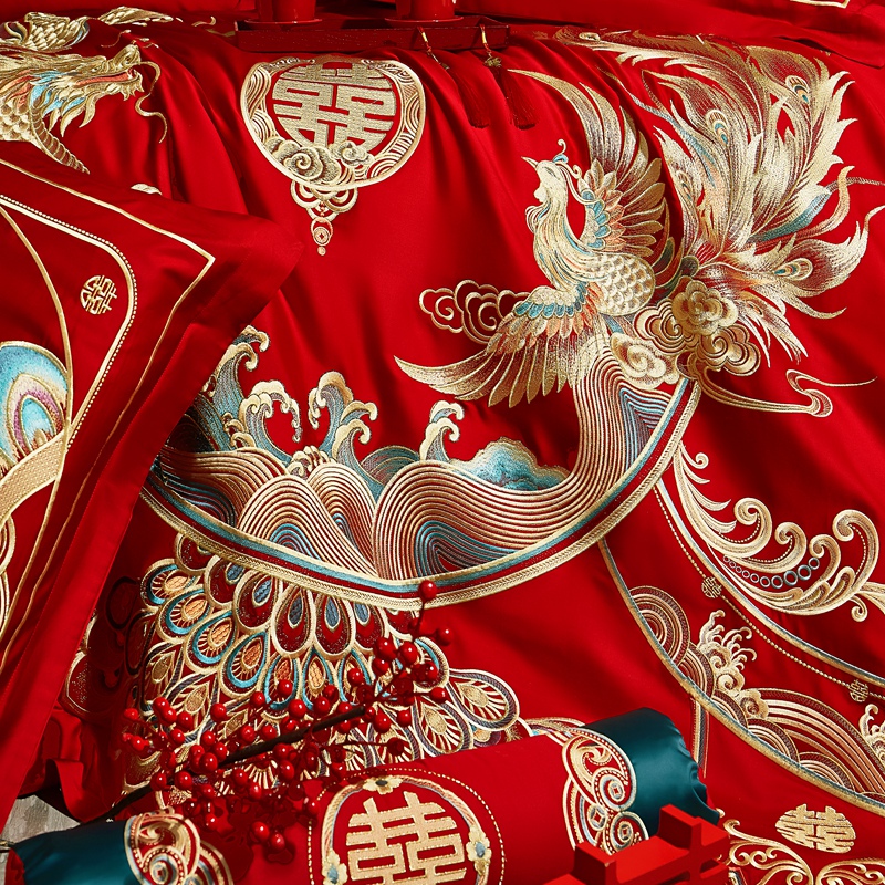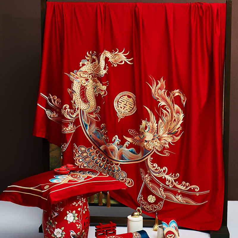 当前位置: 91家纺网 > 商品网购 > 床品套件 > 四件套 > 婚庆四件套 > 布乐意 2025新款全棉长绒棉贡缎提花全工艺喷气重工新中式绣花大红婚庆四件套多件套直播九五至尊