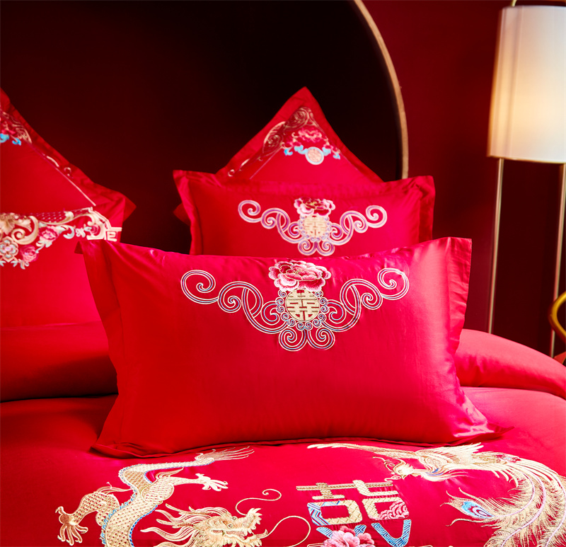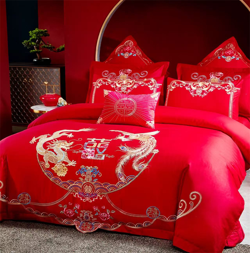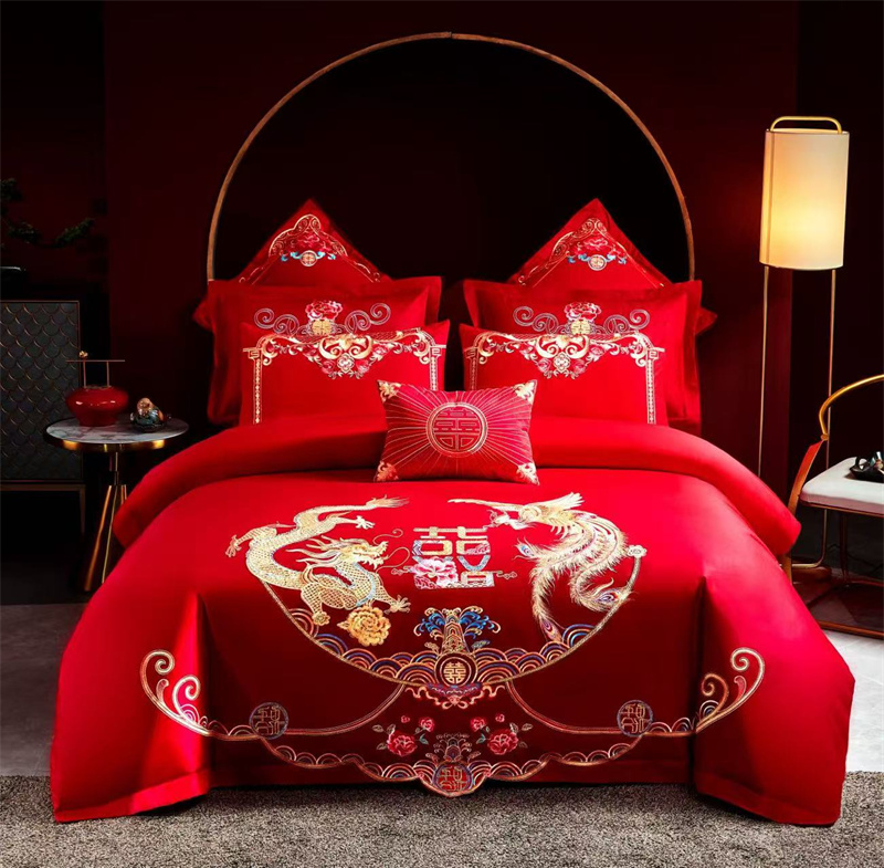当前位置: 91家纺网 > 商品网购 > 床品套件 > 四件套 > 婚庆四件套 > 布乐意 2025新款全棉长绒棉贡缎提花全工艺喷气重工新中式绣花大红婚庆四件套多件套直播龙姿凤彩