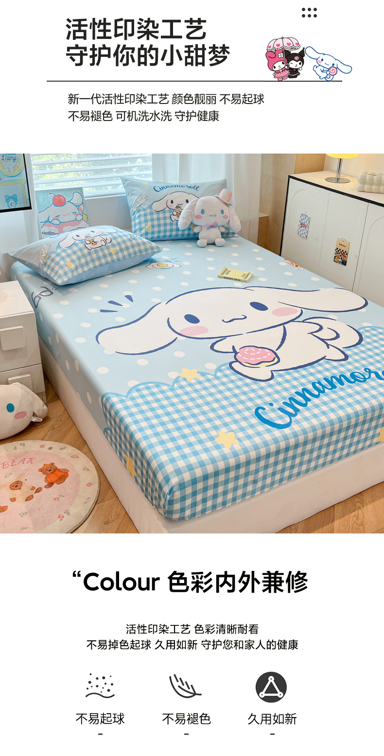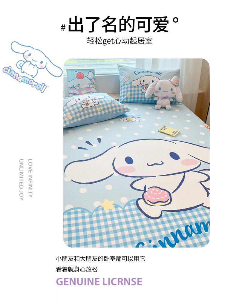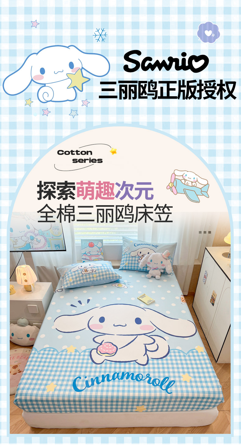 • 91家纺网 家纺一手货源 找家纺 暮思家居 2025新款正版授权三丽鸥大阪全棉数码印花纯棉单品床笠床笠单件单床笠(专版花型) 棉A版-快乐玉桂狗