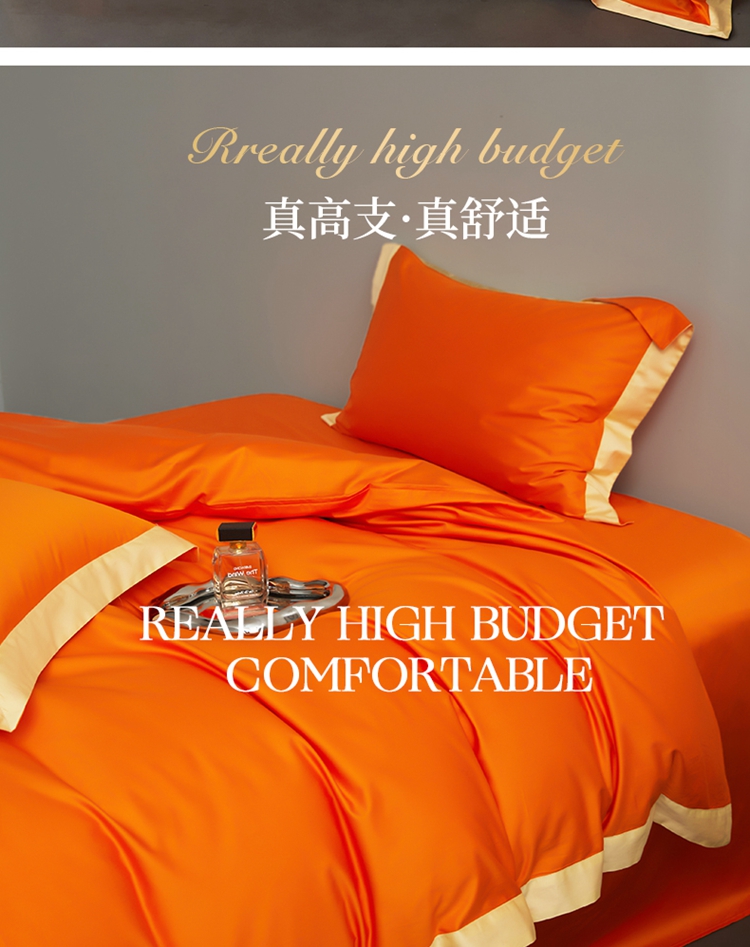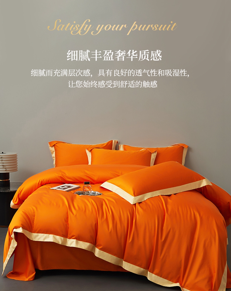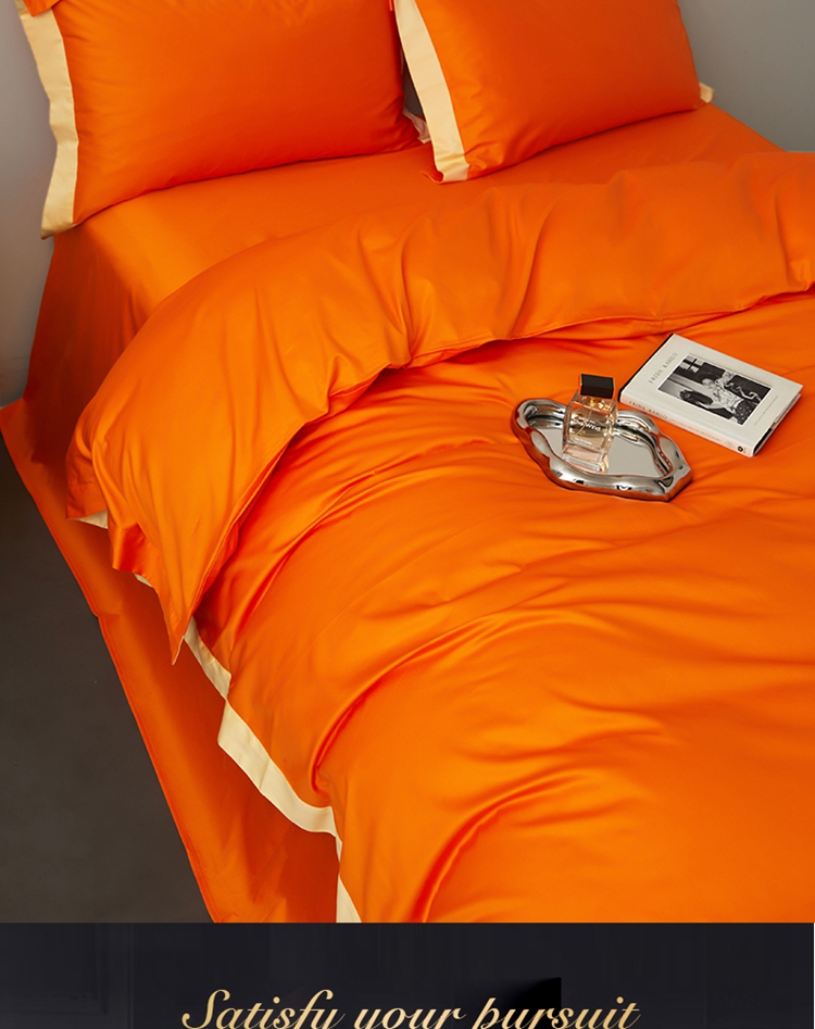 柔觉家纺 新款50*50双股长绒棉纯色拼角四件套 雅-阳光橙