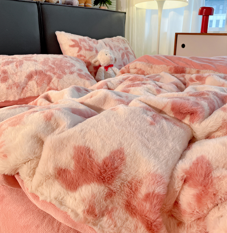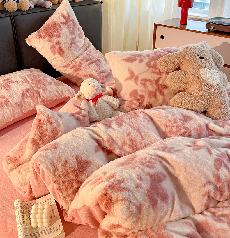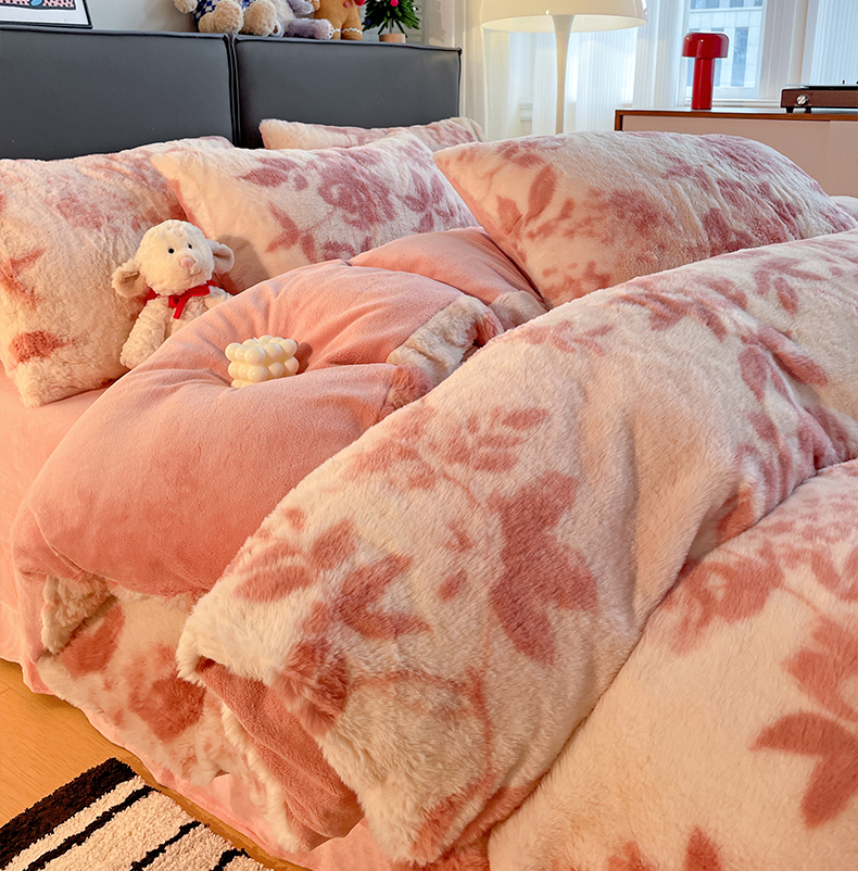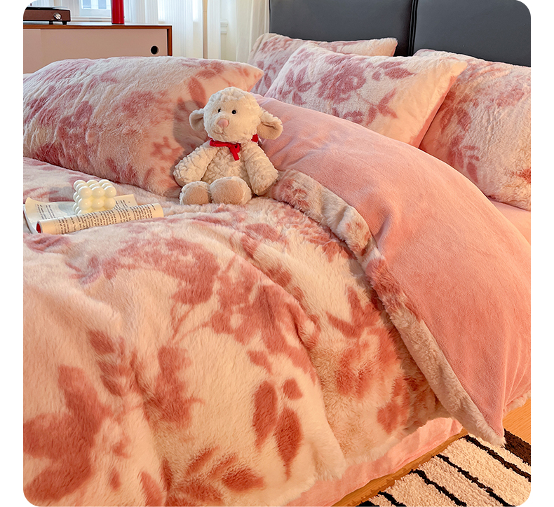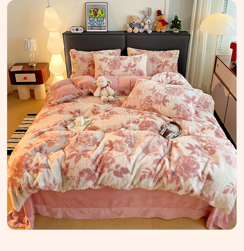 金梦拉 2025直播爆款A类加厚兔绒印花系列四件套 水雾粉
