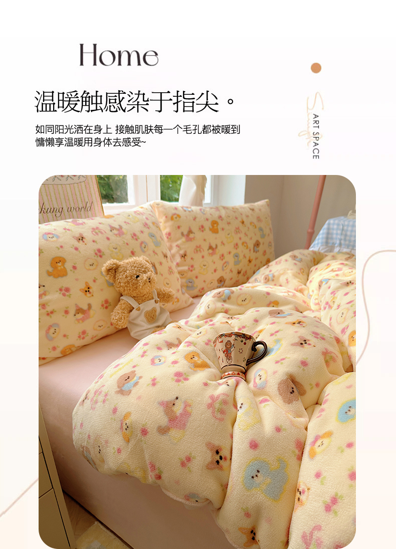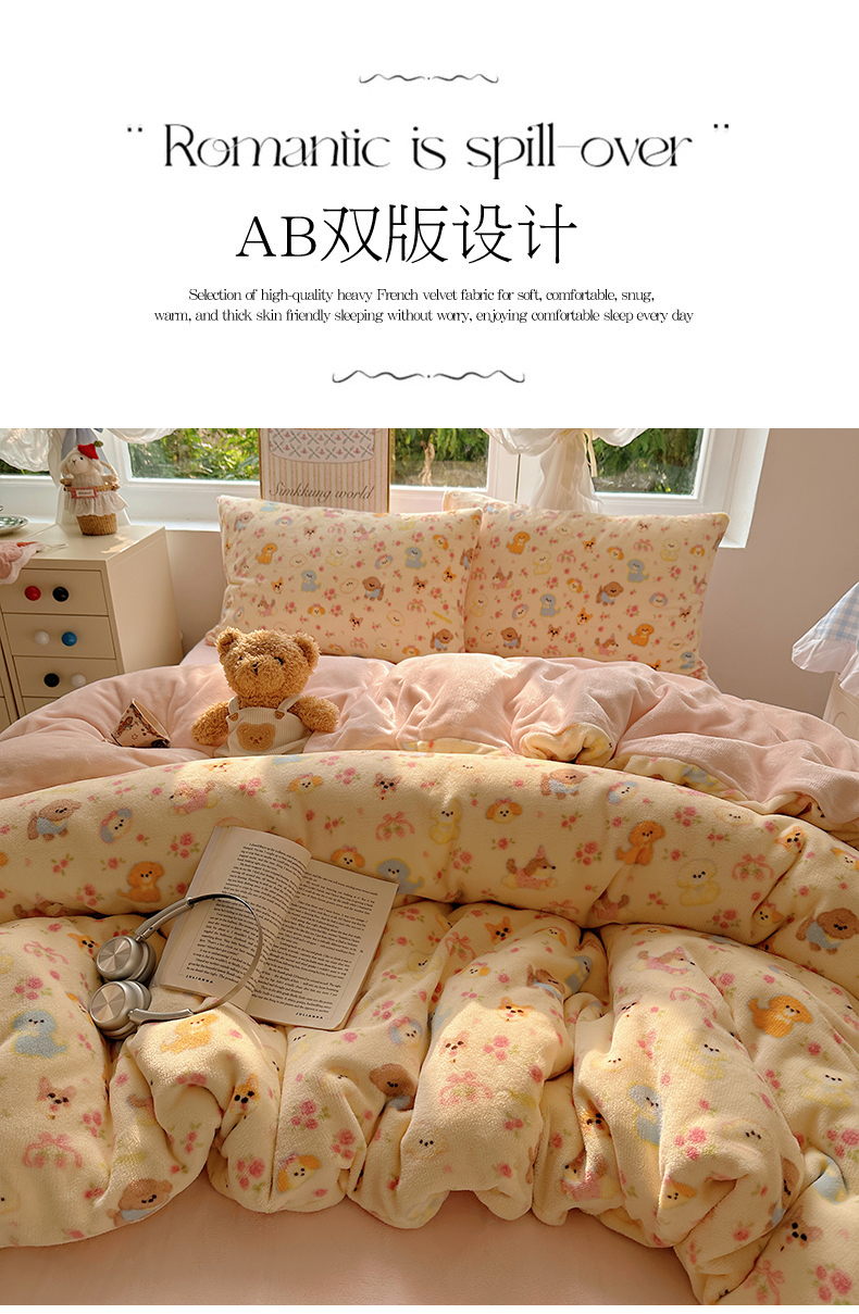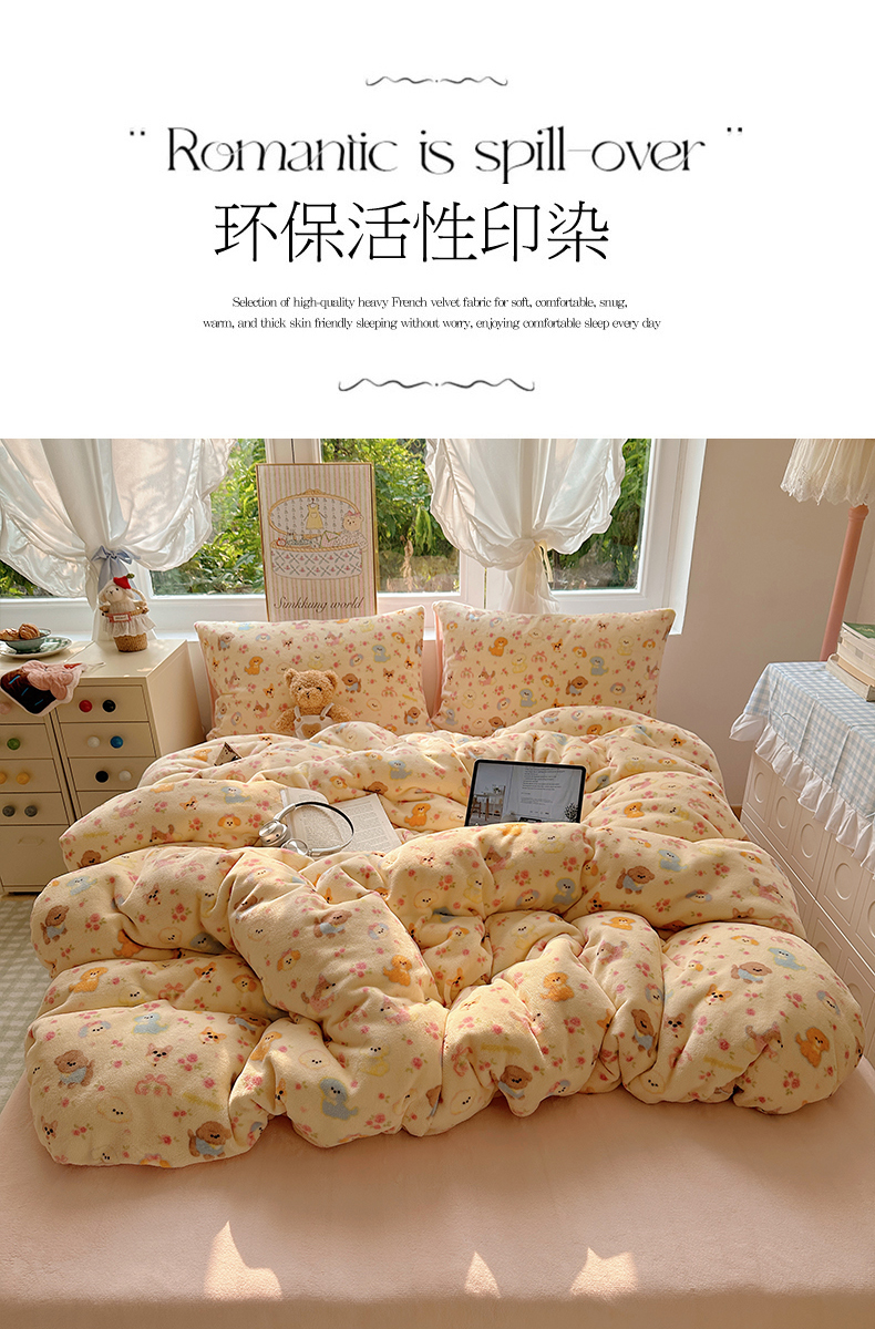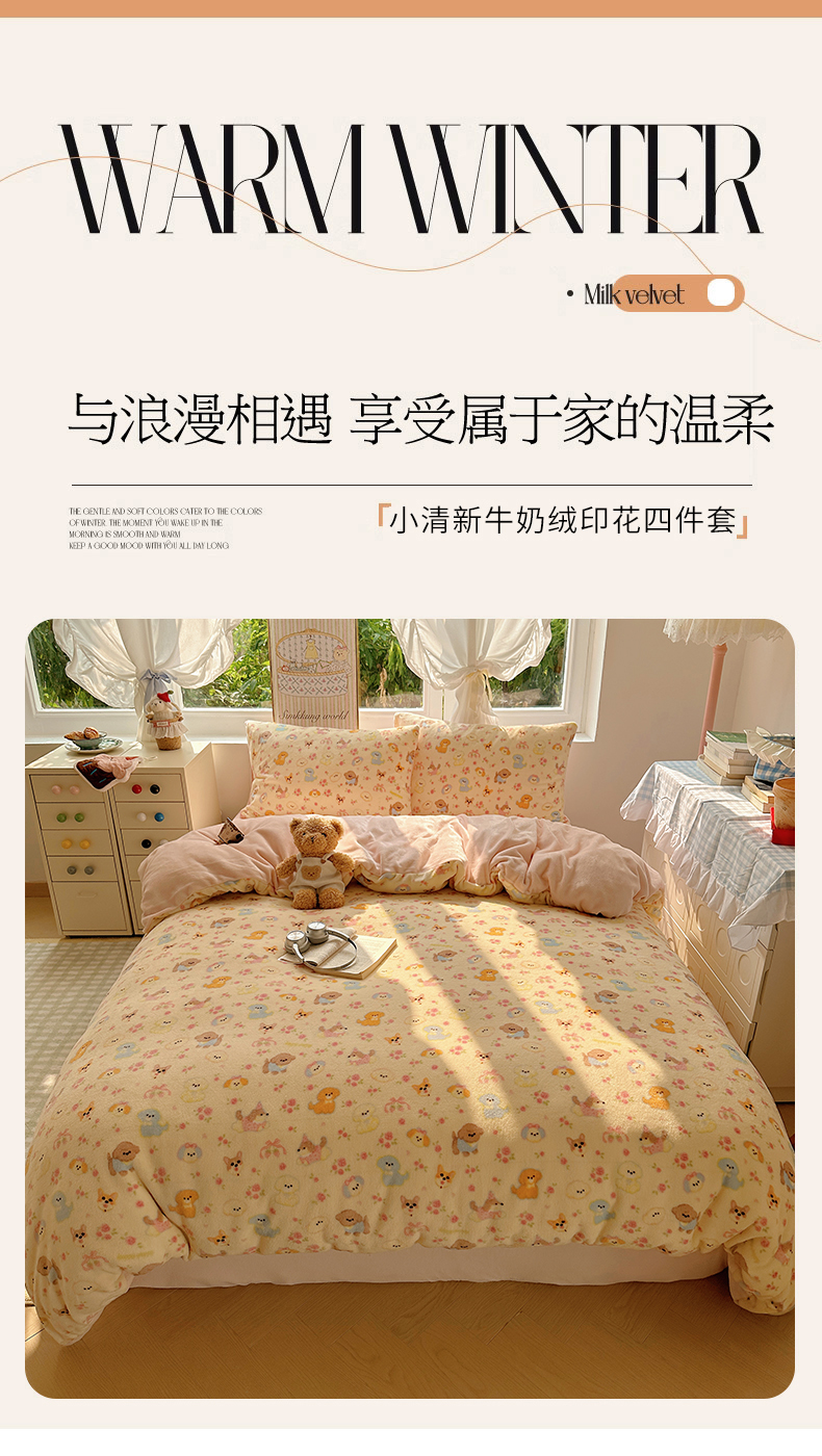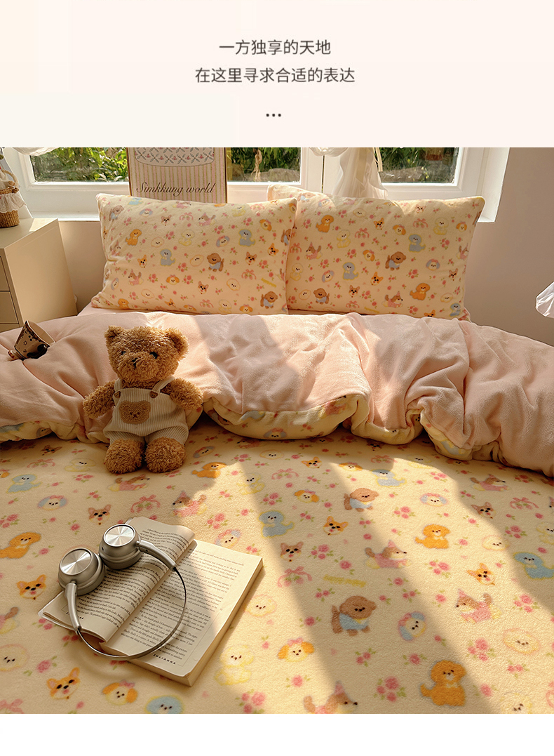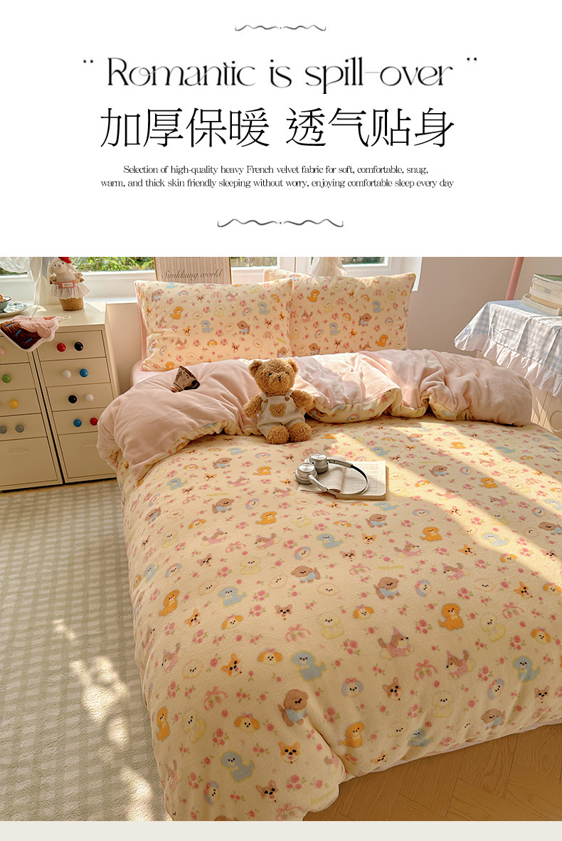 当前位置: 91家纺网 > 商品网购 > 床品套件 > 四件套 > 牛奶绒四件套 > 优选 2025新款小清新加厚高克重牛奶绒四件套直播爆款电商爆款小狗乐园