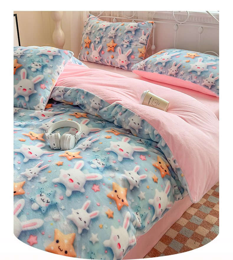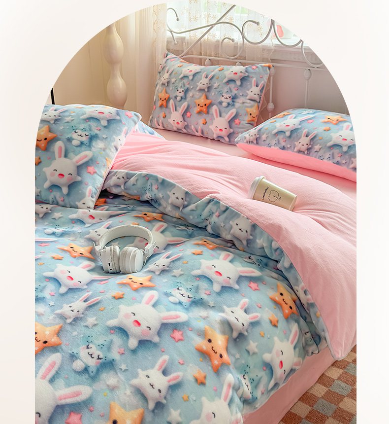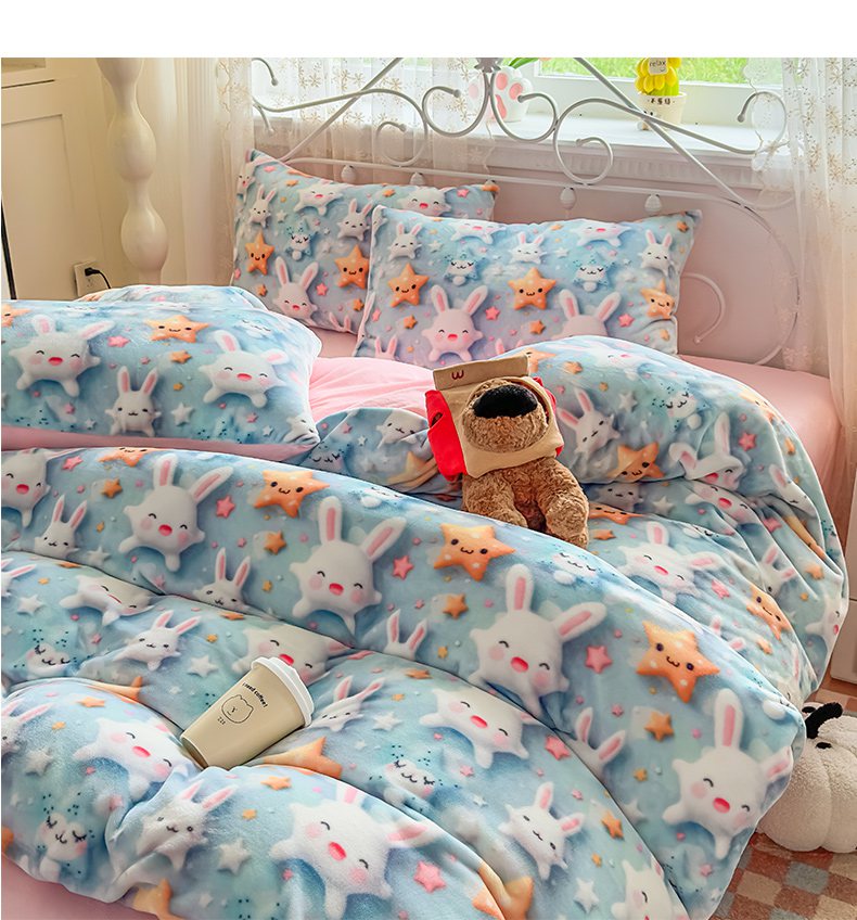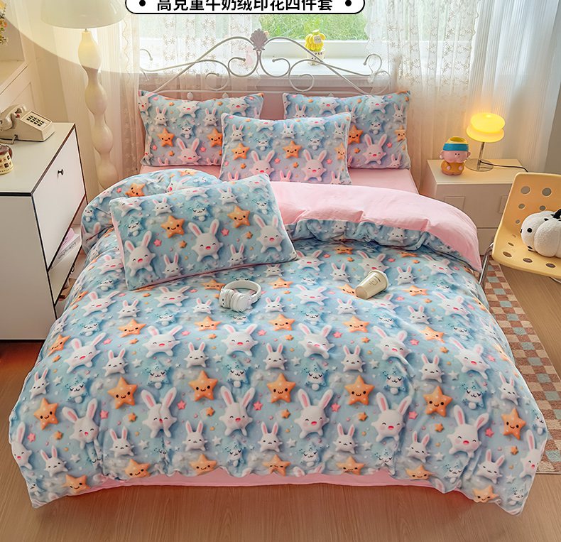 潮邦创意家居 2025新款5D数码牛奶绒印花系列四件套 巧可