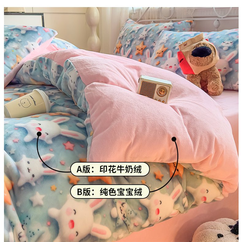 (总)潮邦创意家居 2025新款大版卡通牛奶绒四件套,草莓熊,熊熊零食,遨游太空,大脸猫猫,搞怪小熊,活泼女孩,机灵狗狗,敬礼狗狗,卡通公主,可爱女孩,可爱松鼠,女孩与兔,温馨太空,熊熊party,悠闲生活,友爱龙龙