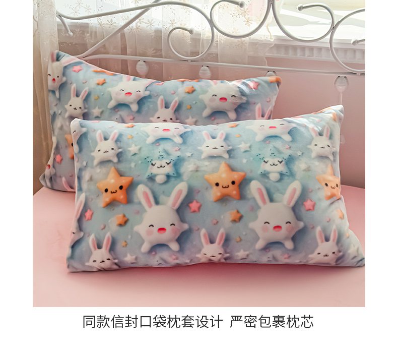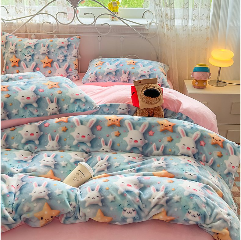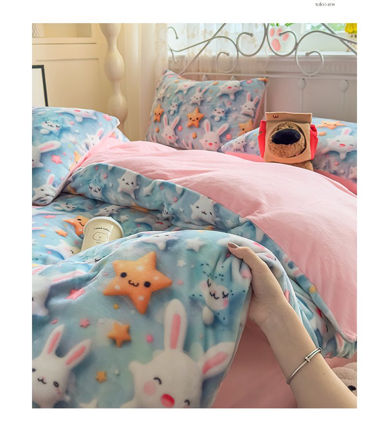 (总)潮邦创意家居 2025新款小米兔泡泡兔绒保暖四件套,米兔白,米兔豆沙,米兔灰,米兔卡其,米兔绿