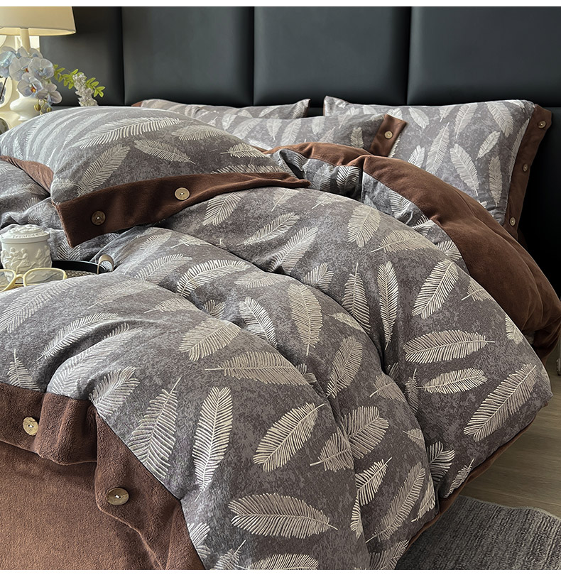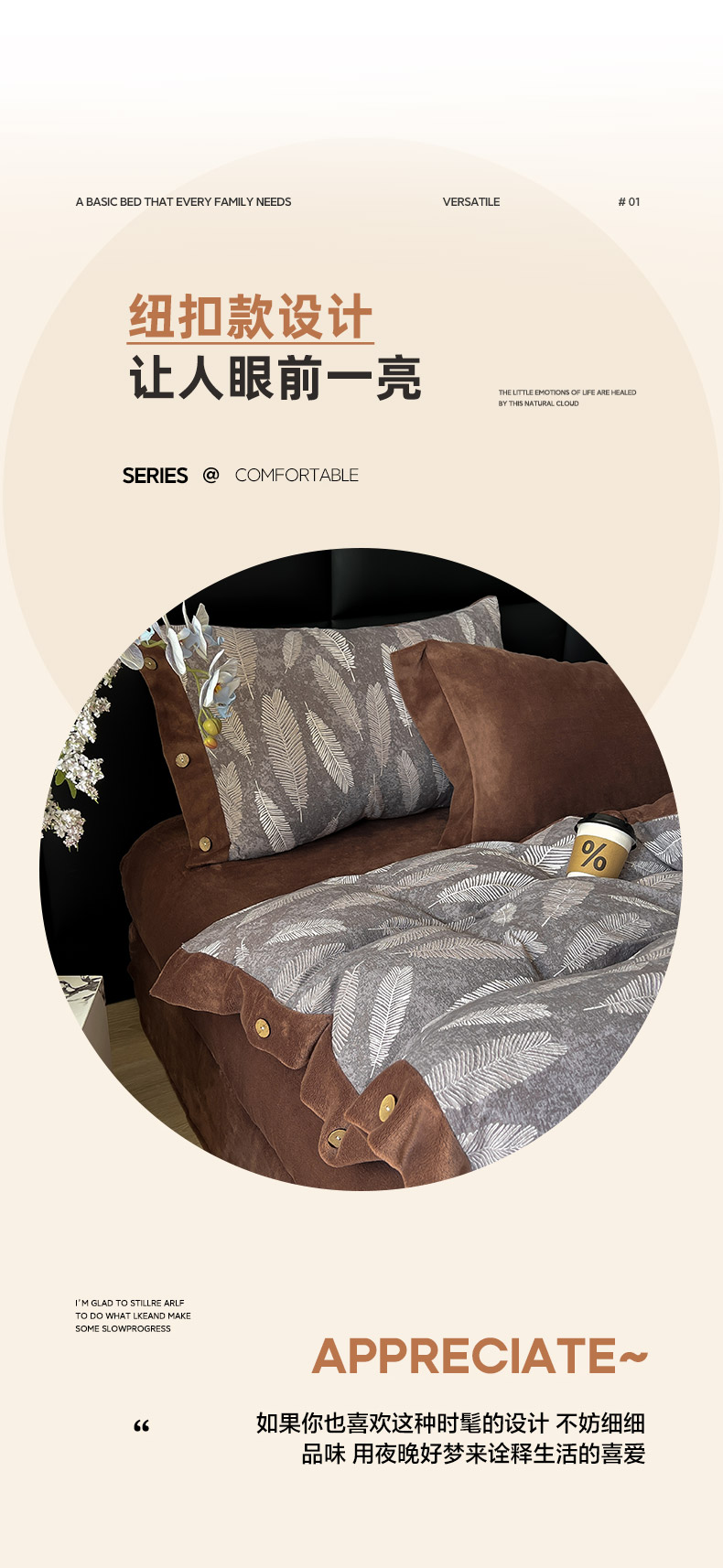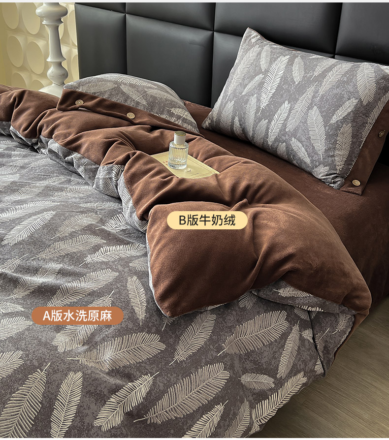 当前位置: 91家纺网 > 商品网购 > 床品套件 > 四件套 > 牛奶绒四件套 > 吾秀家居 2025新款水洗原麻牛奶绒纽扣款四件套 叠影