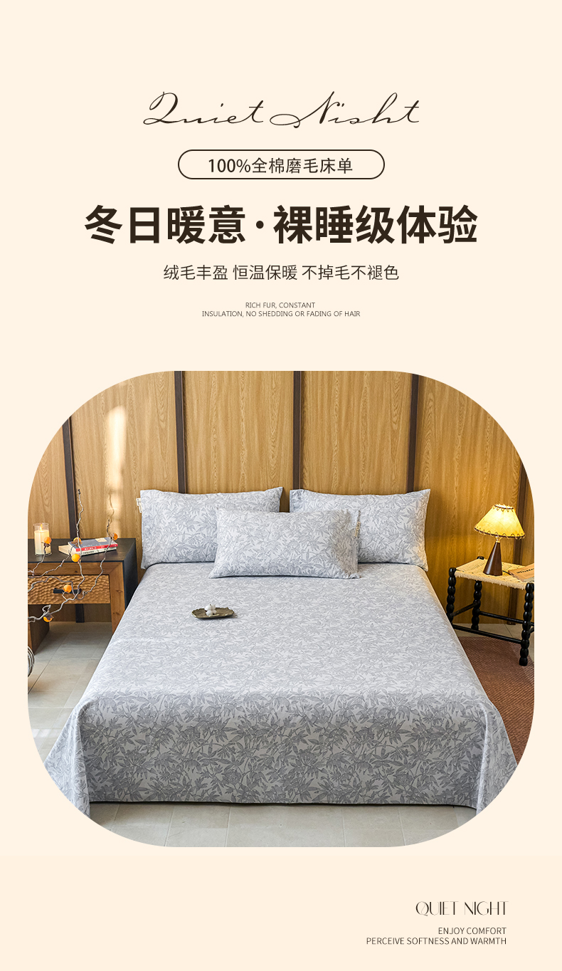 商品名称:春皖家纺 2025新款原棉磨毛单床单 床单单件-风格一恋影春天