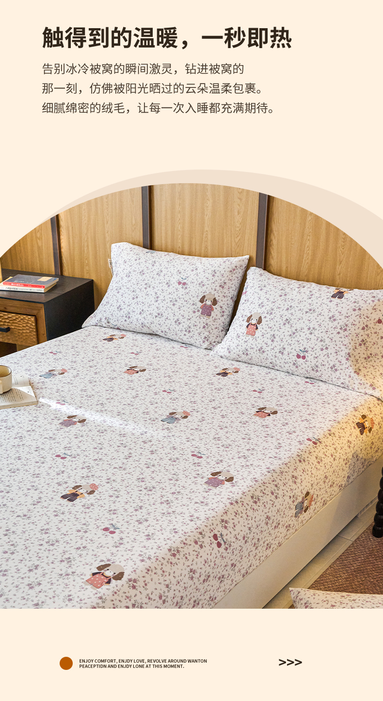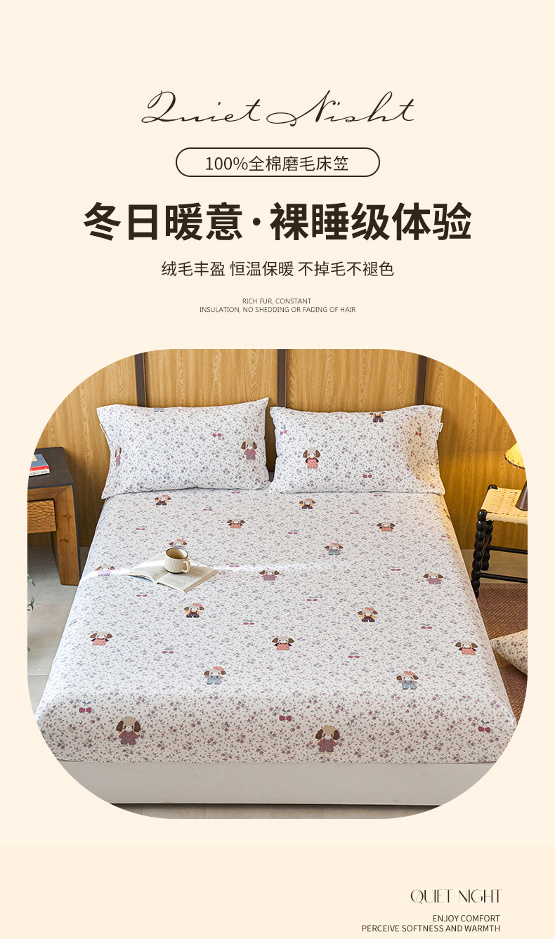 商品名称:春皖家纺 2025新款原棉磨毛单床笠 床笠单件-风格一旺财