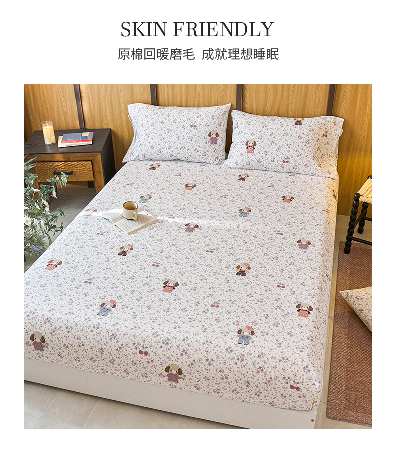 春皖家纺 2025新款全棉原棉磨毛色织水洗单床笠回暖系列-风格二 旺财