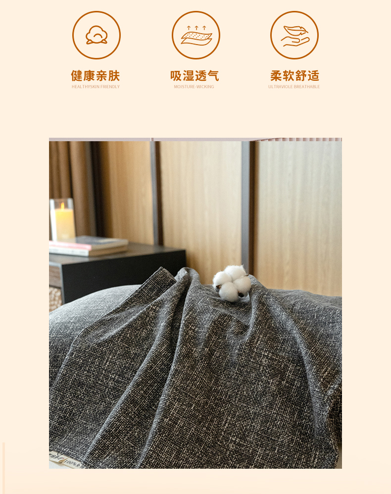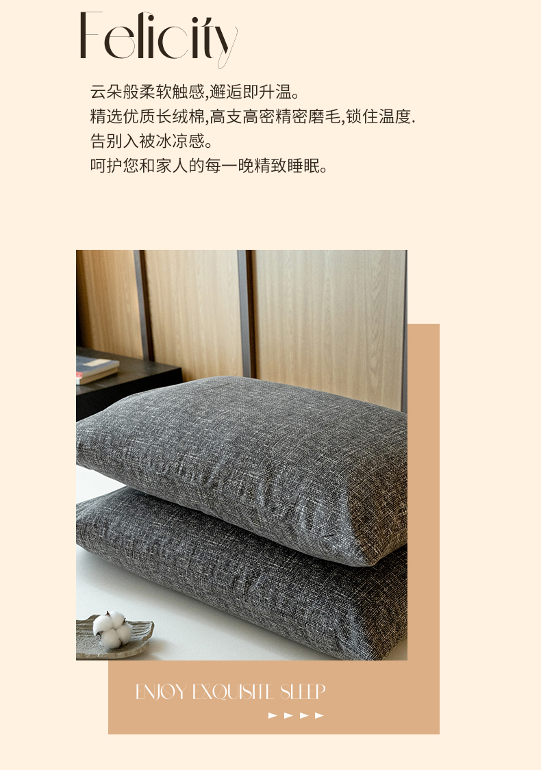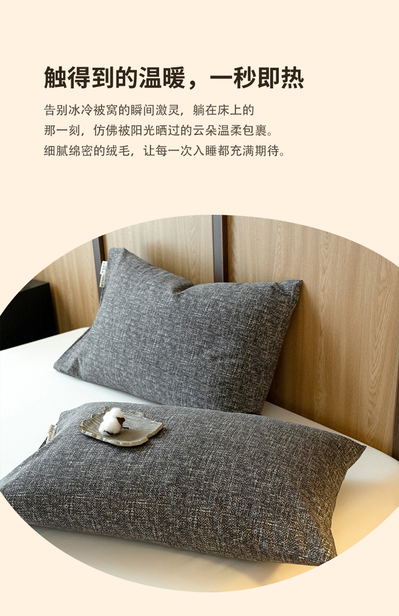 商品名称:春皖家纺 2025新款全棉原棉磨毛色织水洗单枕套回暖系列-风格二 浅陌灰