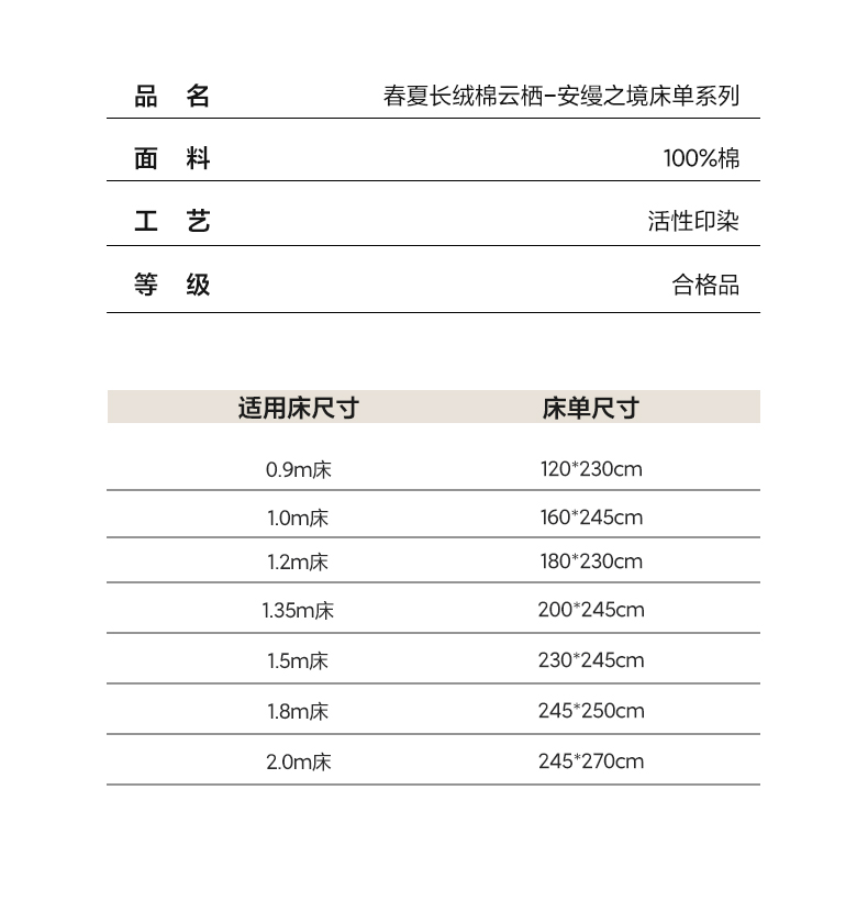 商品名称:(总)EH家居 2026新款长绒棉安缦之境单品系列单床单