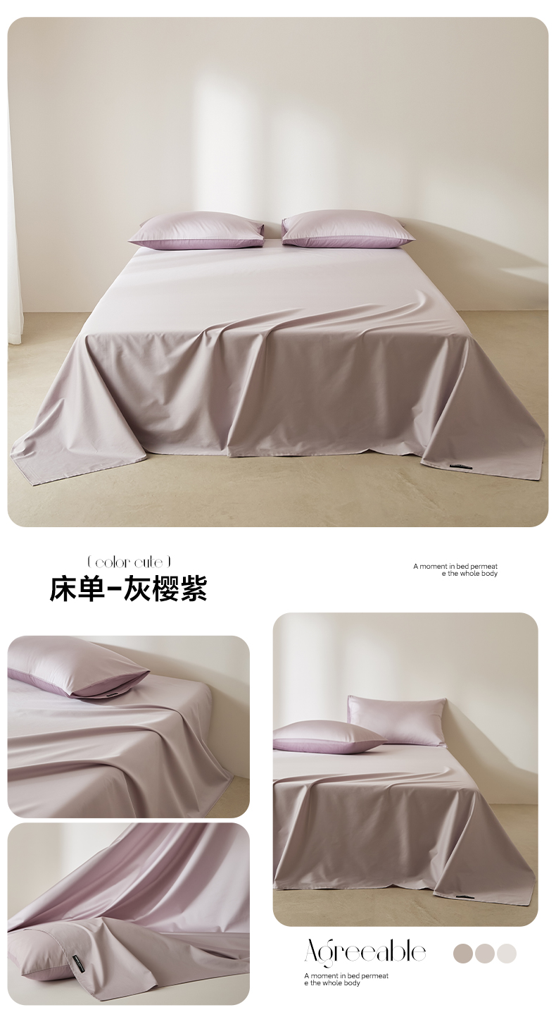 (总)EH家居2025新款50*50双股长绒棉纯棉系列床单单件-单床单,草籽灰,初雪咖,淡青色,黑加仑紫,梅子粉,暮色灰,清雅绿,仙草玉粉,组合图仅供展示