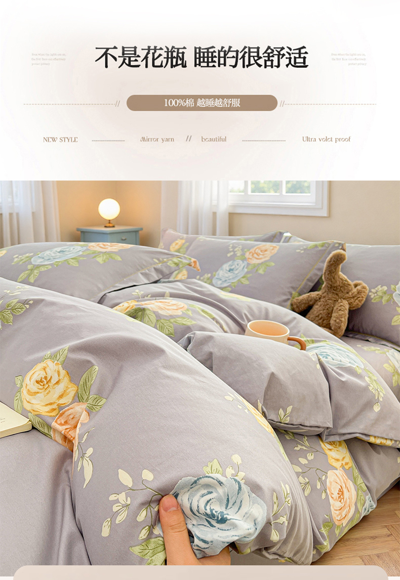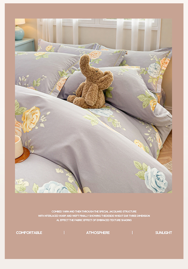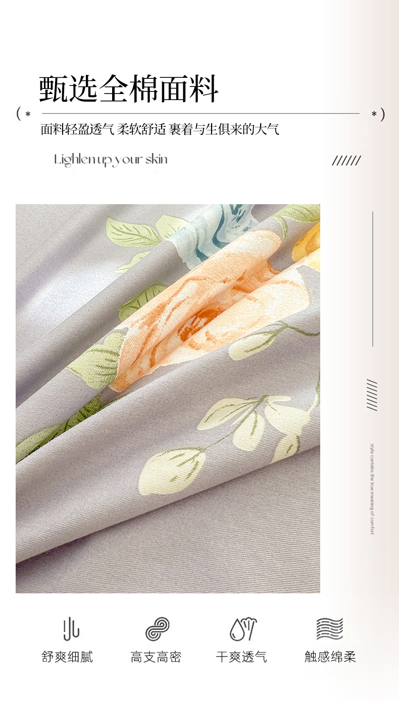 当前位置: 91家纺网 > 商品网购 > 床品套件 > 四件套 > 全棉普通四件套 > 名优家纺 2026新款60S13374高支密全棉印花纯色四件套 絮棠-灰