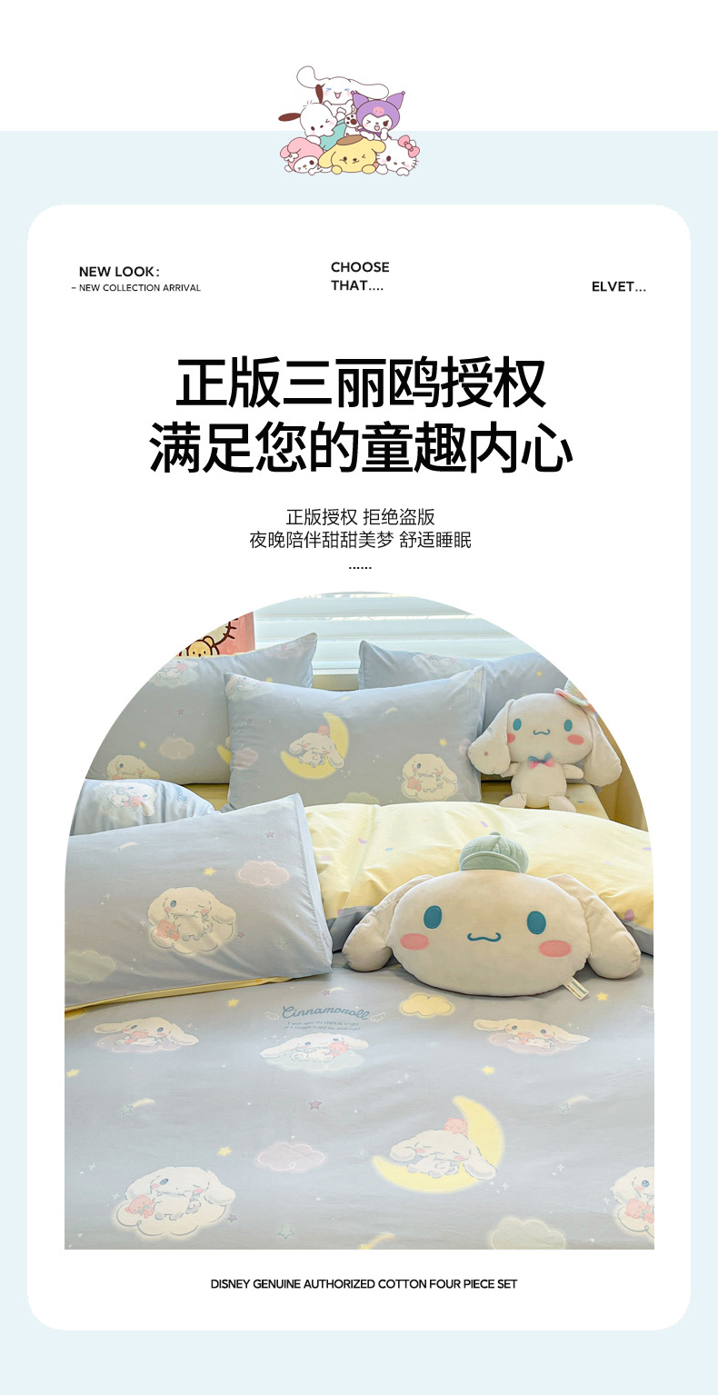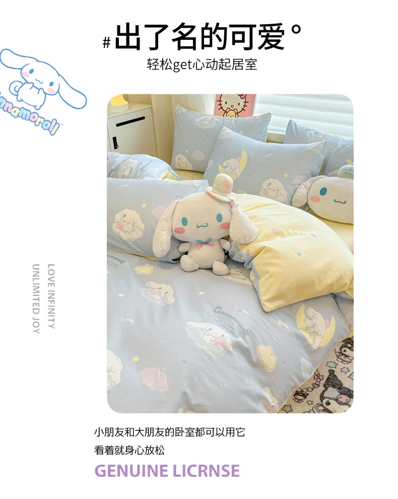 当前位置: 91家纺网 > 商品网购 > 床品套件 > 四件套 > 全棉普通四件套 > 暮思家居 2026新款正版授权三丽鸥全棉纯棉四件套系列-第一批 晚安大耳狗