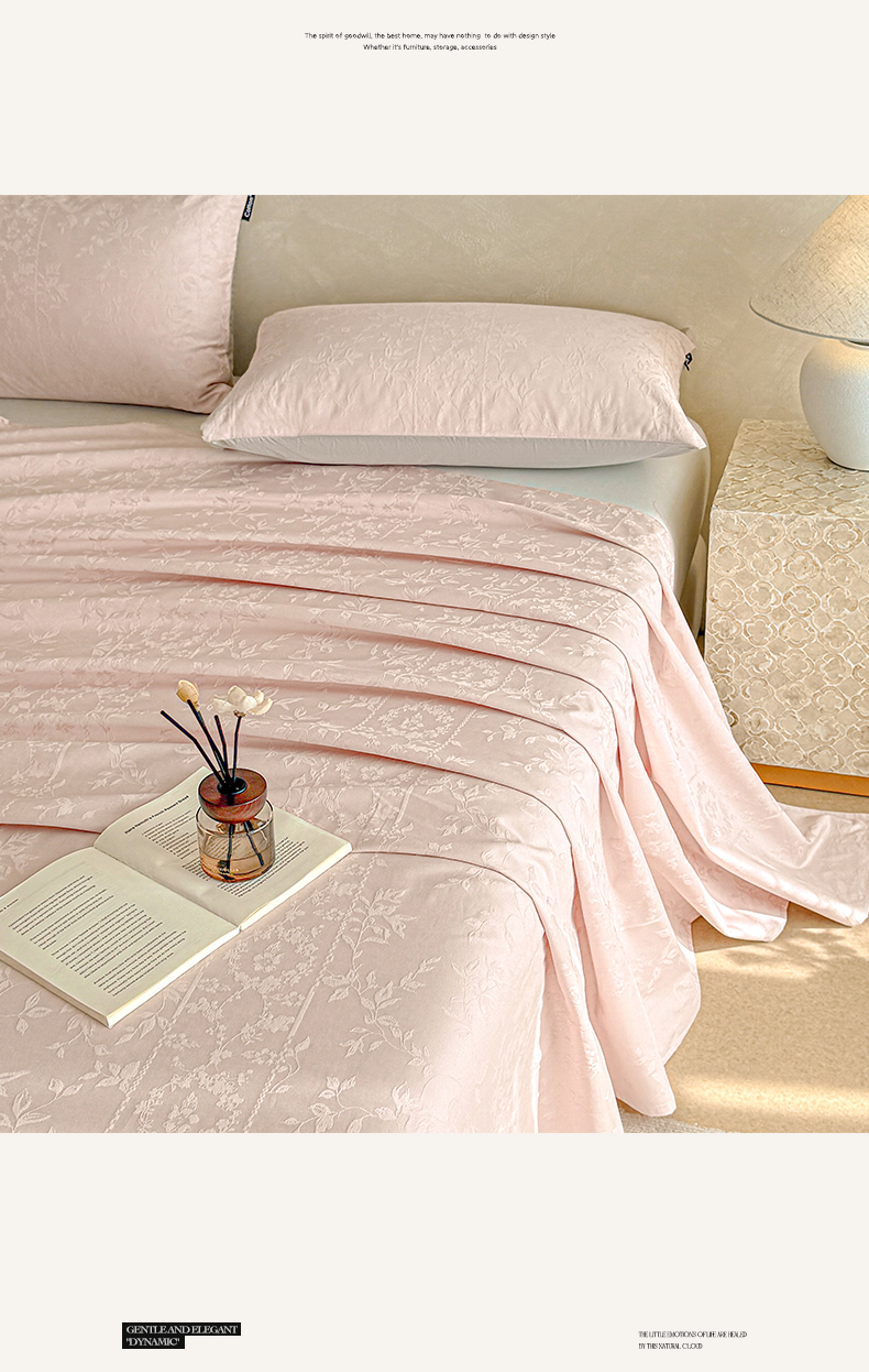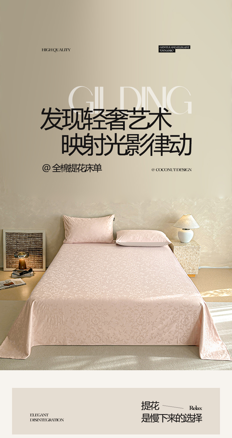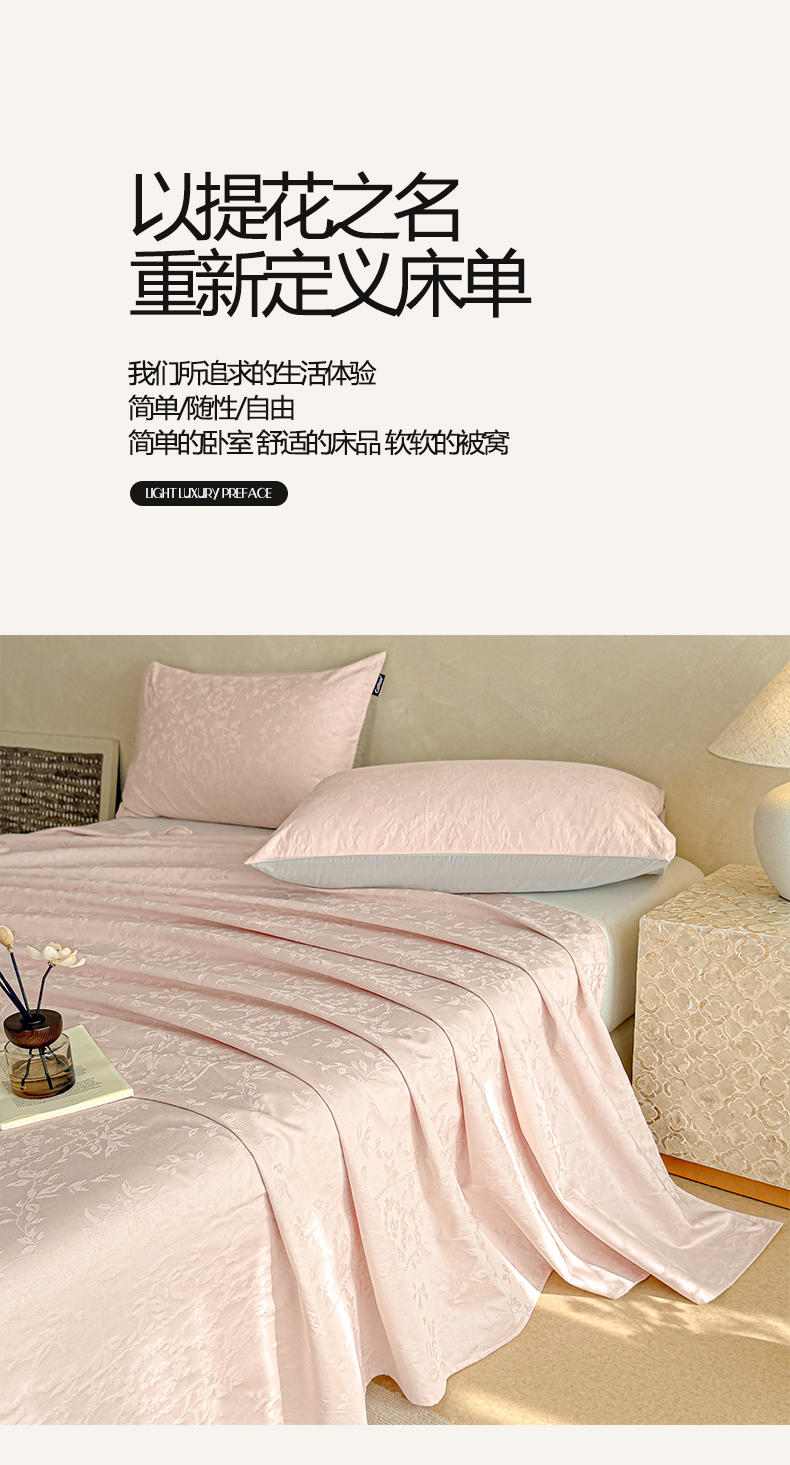 • 91家纺网 家纺一手货源 找家纺 涵宸家纺 2026新款全棉提花里拉系列单床单 床单-沁语-粉金