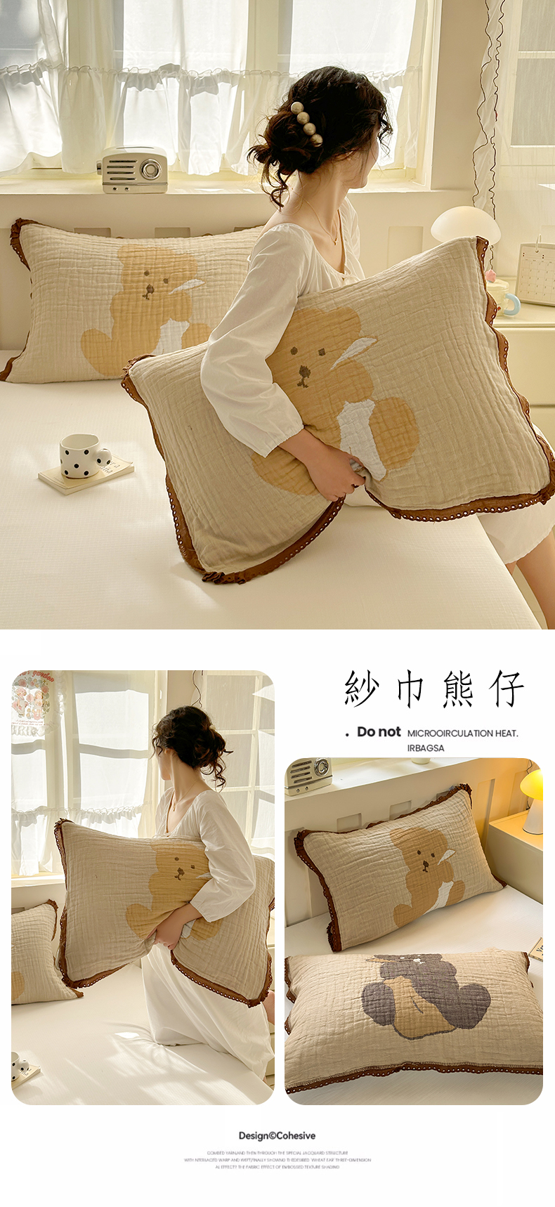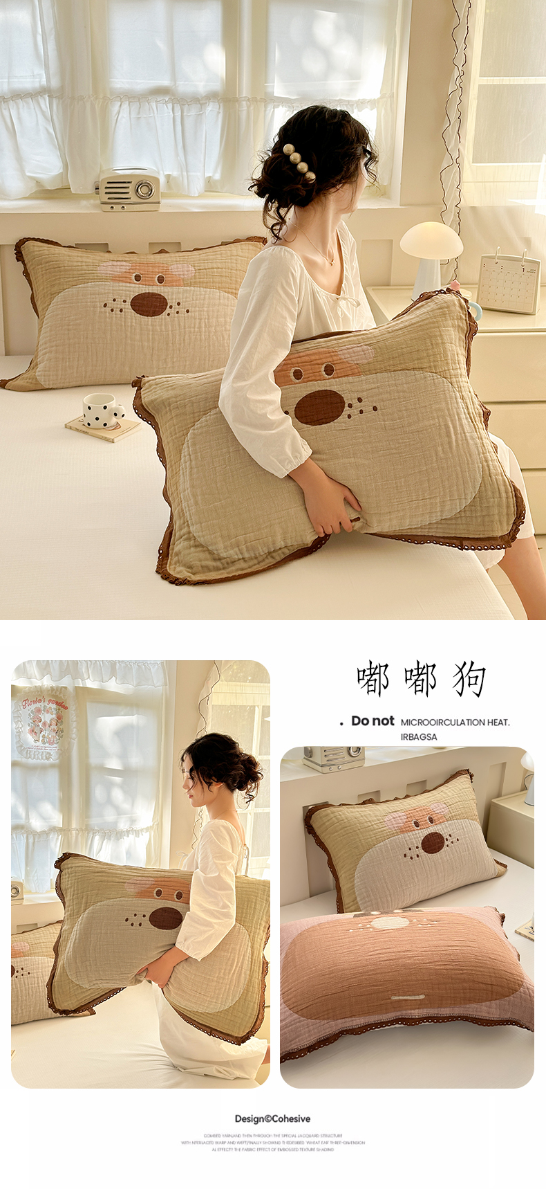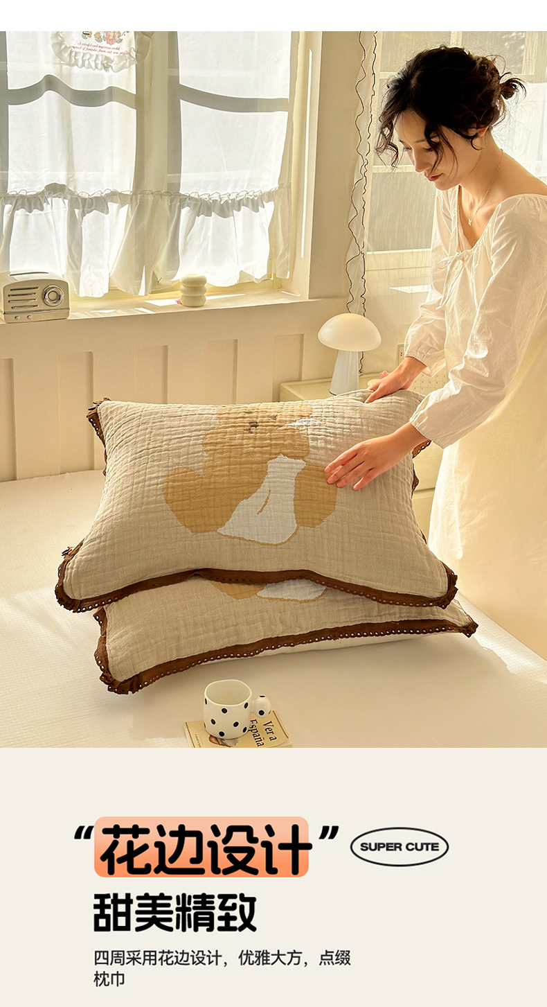 当前位置: 91家纺网 > 商品网购 > 床上用品 > 枕巾垫巾 > 朴尔家纺-毛巾被 2026新款皱皱纱卡通大版花边全棉四层纱布枕巾 条纹虎