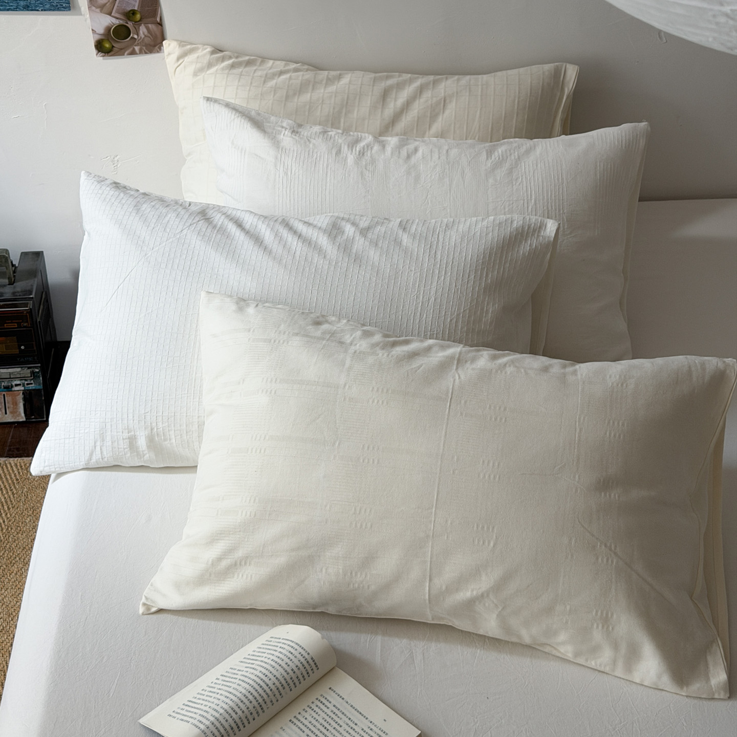 (总)艾沁家纺 2026新款不染的原棉全棉色织提花单品枕套,组合图仅展示,大方格,小方格,小小格,小长条