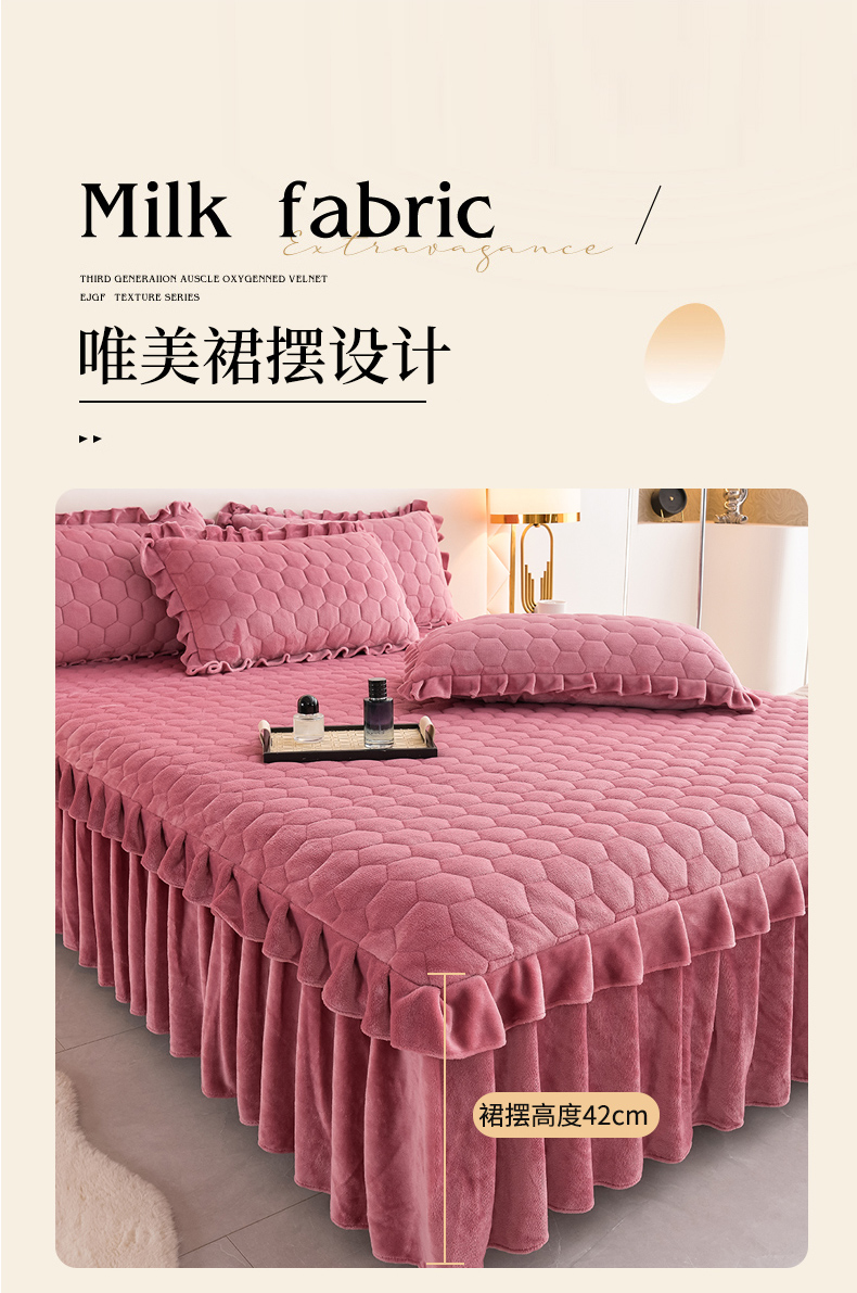 (总)优家居工厂店 2026新款纯色韩版花边牛奶绒床裙床罩加厚直播外贸可定做,盛世-宝蓝,盛世-翠绿,盛世-豆沙,盛世-粉玉,盛世-魅紫,盛世-米白,盛世-杏黄,盛世-银灰