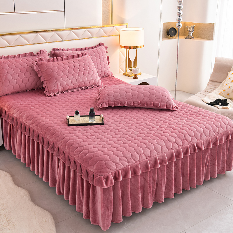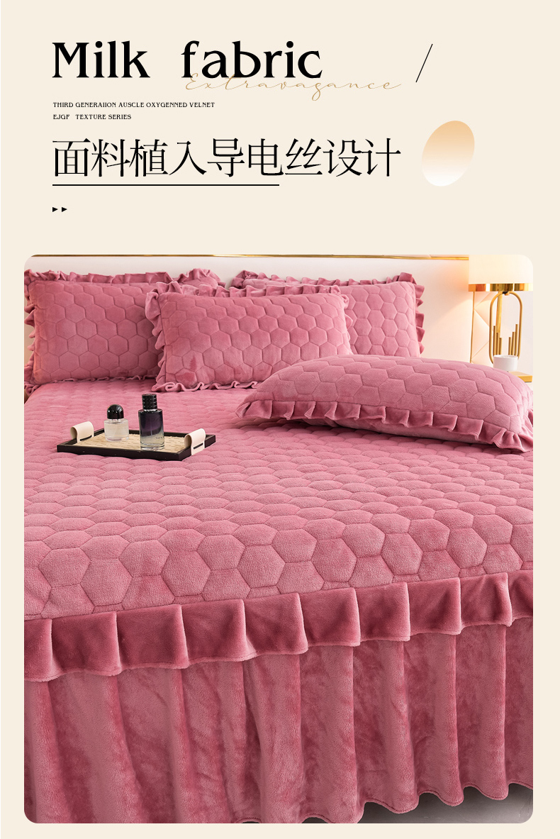 优家居工厂店 2026新款纯色韩版花边牛奶绒夹棉床裙床罩加厚外贸直播 盛世-豆沙