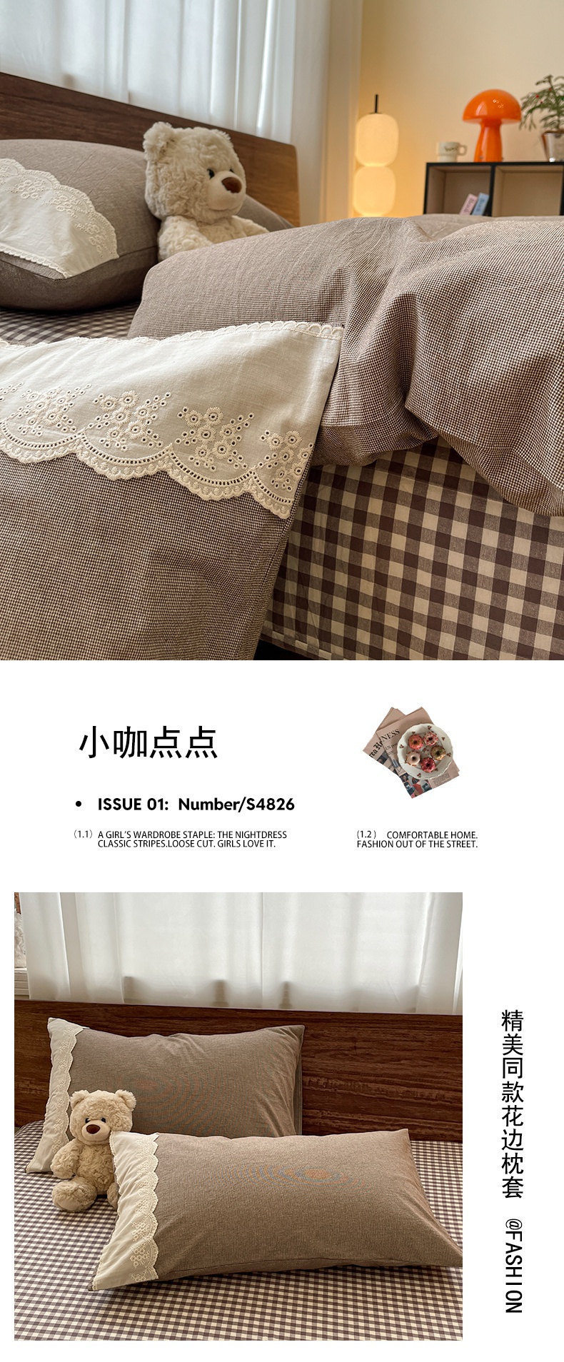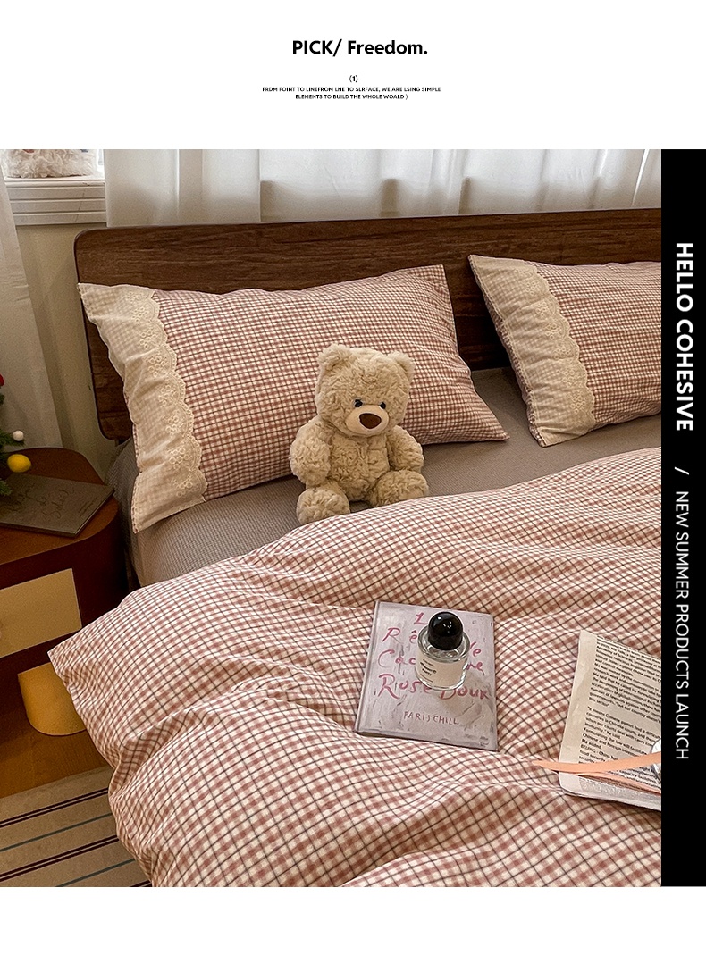 当前位置: 91家纺网 > 商品网购 > 床品套件 > 四件套 > 全棉普通四件套 > 花漾家居 2026新款全棉色织水洗棉复古花边无印格条被套三件套四件套 奶油樱花